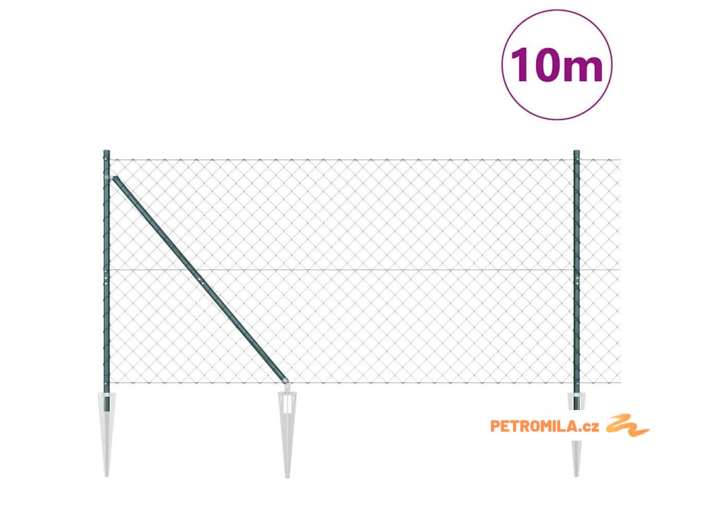 Řetězový plot se sloupy Zelená 1.2 x 10 m Ocel