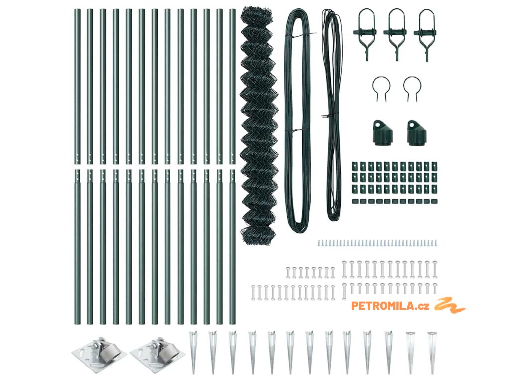 Řetězový plot se sloupy Zelená 1.5 x 25 m Ocel