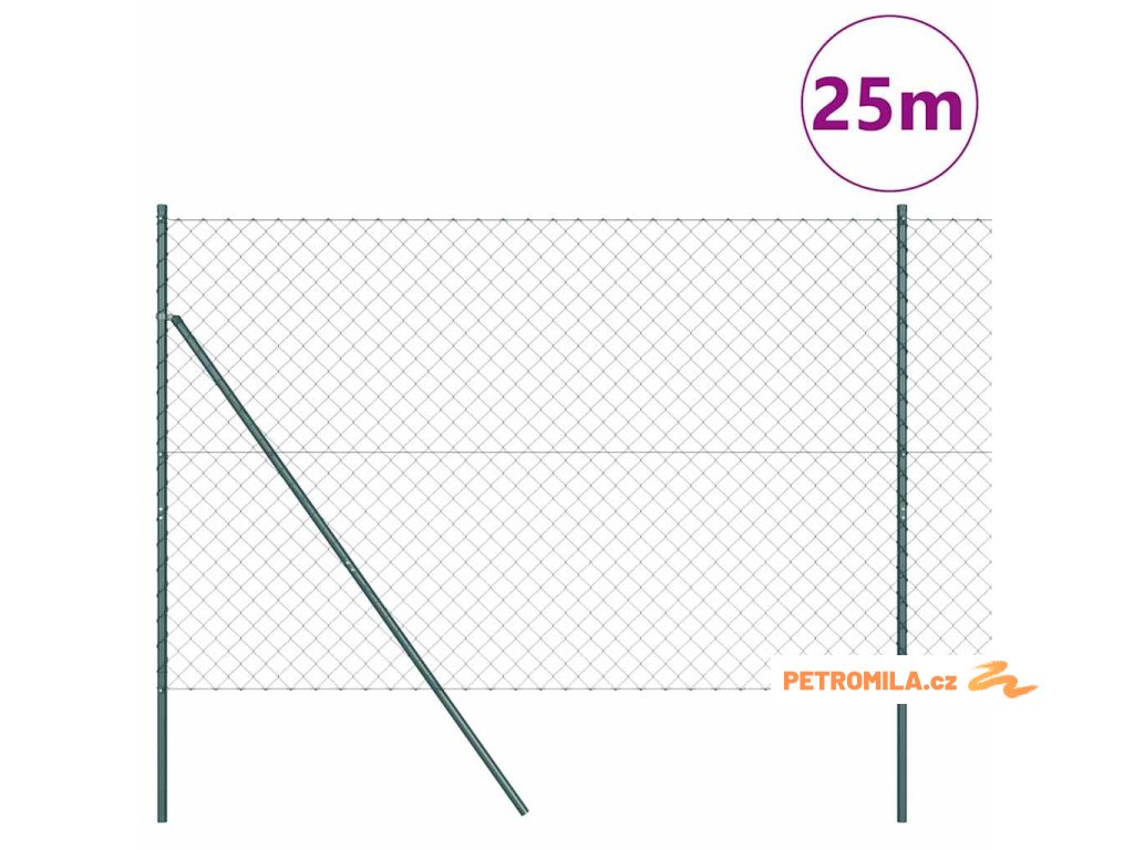 Řetězový plot se sloupy Zelená 1.5 x 25 m Ocel