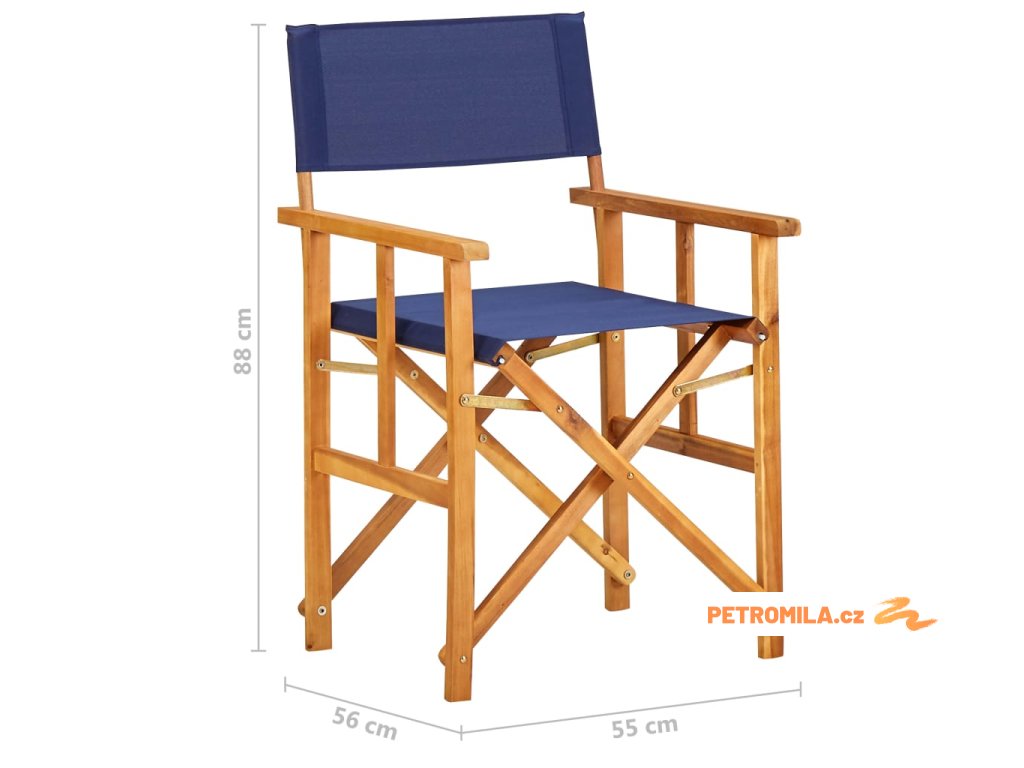 Režisérská židle masivní akáciové dřevo modrá