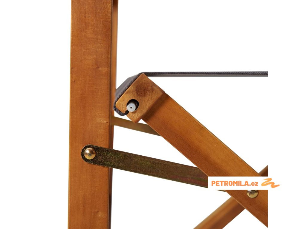 - Materiál: rám z masivního akáciového dřeva s olejovaným povrchem + látkový sedák a opěradlo