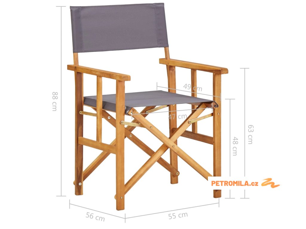 Režisérské židle jsou vyrobeny z masivního akáciového dřeva, což je vysoce odolné tropické dřevo, které nepodléhá klimatickým vlivům. Sedátka a opěradla z vysoce kvalitní látky přispívají k jejich mimořádné pohodlnosti. Pro snadné skladování či přepravu lze režisérské židle také složit.