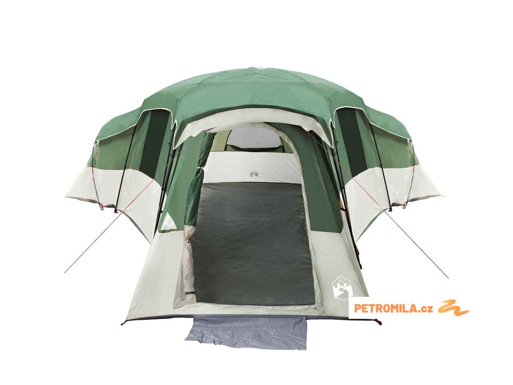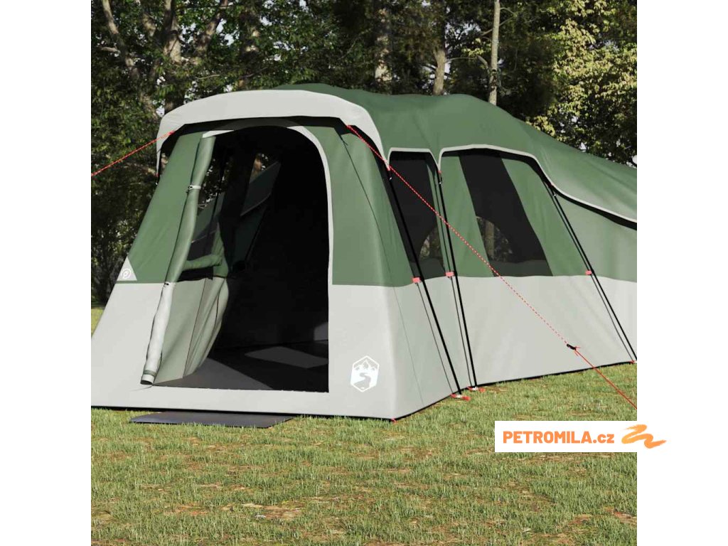 Prémiový taft: Stan je vyroben z taftu, který je trendy a funkční. Hladký a elegantní vzhled dává stanu přitažlivost, a materiál je taky známy svojí odolností vůči silnému větru. Tomu se těší rodiny, které hledají klid při kempování. Kompletní součásti: Tento balíček obsahuje všechno potřebné k instalaci: sklolaminátové tyče různých velikostí pro podporu struktury, ocelové tyče pro lepší stabilitu, provazy pro bezpečné upevnění a hodně kolíků pro ukotvení na zemi. Součástí je i praktická taška pro přepravu a skladování. Praktické funkce: Stan je vyrobený s ohledem na praktičnost, zahrnuje E-port pro snadné připojení elektroniky venku. Zavěšený hák slouží pro osvětlení nebo jiné potřebnosti, aby byl kemp možný a pohodlný. Univerzální využití: Ideální na víkendové úniky ze zahrady nebo na vícedenní kempování, moderní styl stanu je velmi užitečný. Čtyři pokoje vám dají soukromí, zatímco tři dveře usnadňují přístup, což z něj dělá skvělou volbu pro různé venkovní akce. Jednoduchá údržba: Údržba stanu je snadná. Po použití stačí jemně otřít jakoukoli vlhkost a uložit do dodané tašky. Ujistěte se, že všechny části, jako jsou tyče a kolíky, jsou suché, aby vydržely dlouho a byly připravené na vaše další výlety.- Barva: Zelená