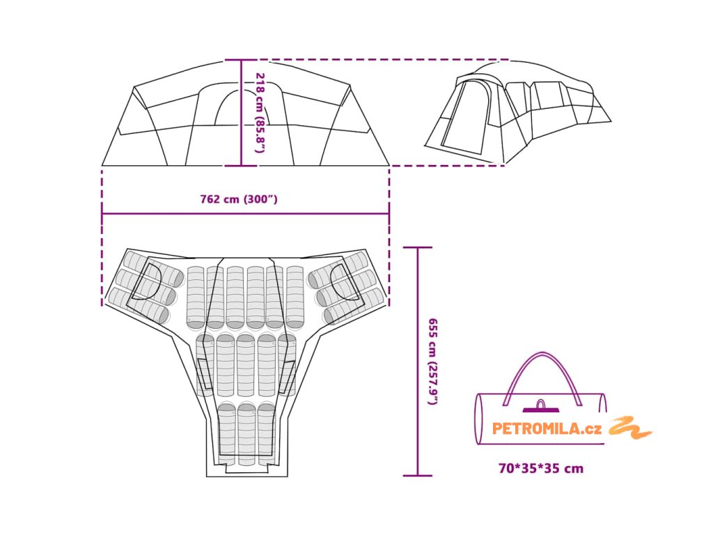 Rodinný stan Šedá a oranžová 833 x 585 x 216 cm taft