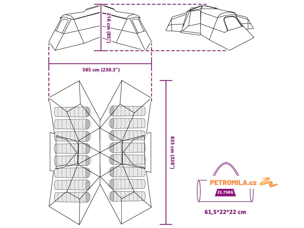 Rodinný stan Šedá a oranžová 833 x 585 x 216 cm taft