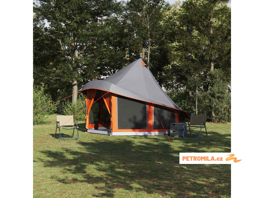 Rodinný tipi stan Šedá a oranžová 404 x 370 x 270 cm