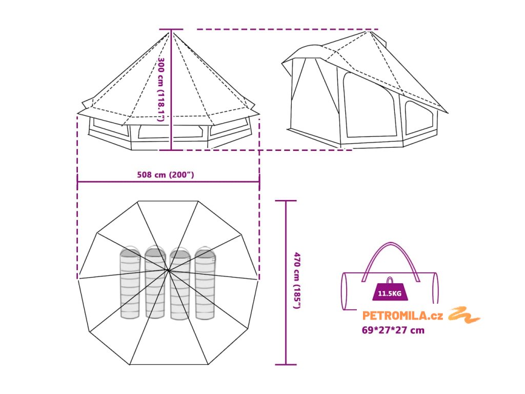Rodinný tipi stan Tipi Modrý a šedý 508 x 470 x 300 cm