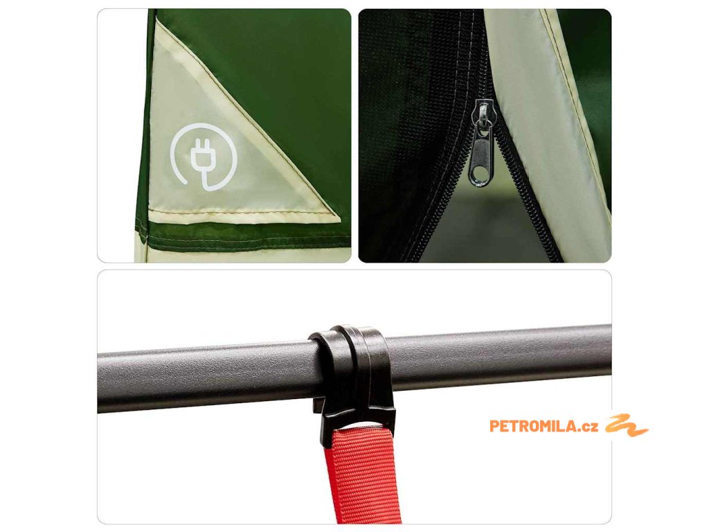 - Bezpečné zipy – Stan se jednoduše uzavírá pomocí zipu, takže je v něm všechno v bezpečí a vy můžete jít ven bez obav před deštěm.