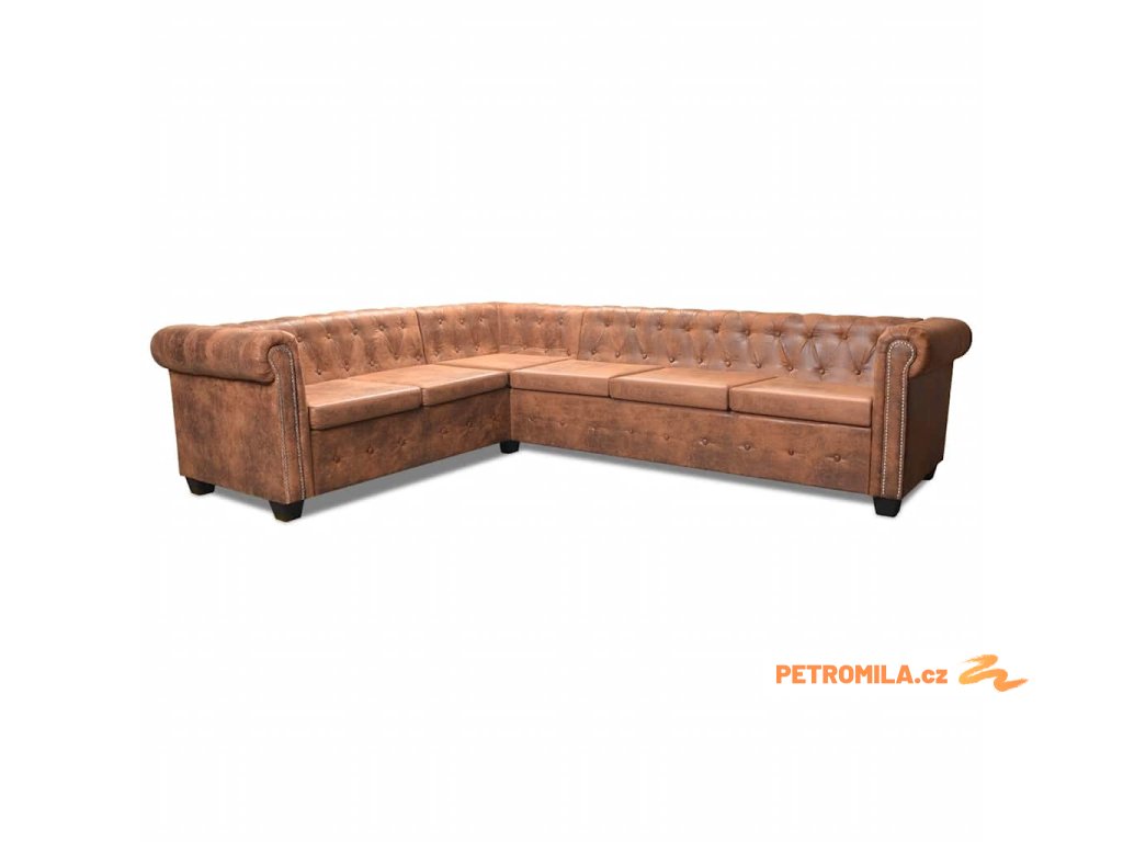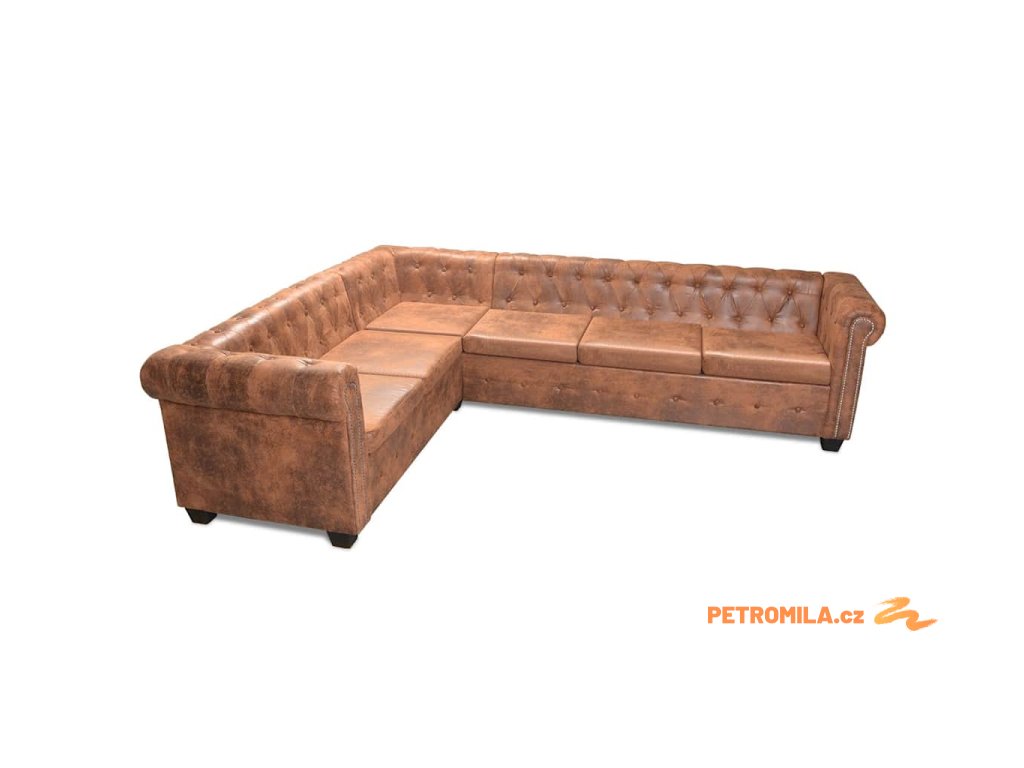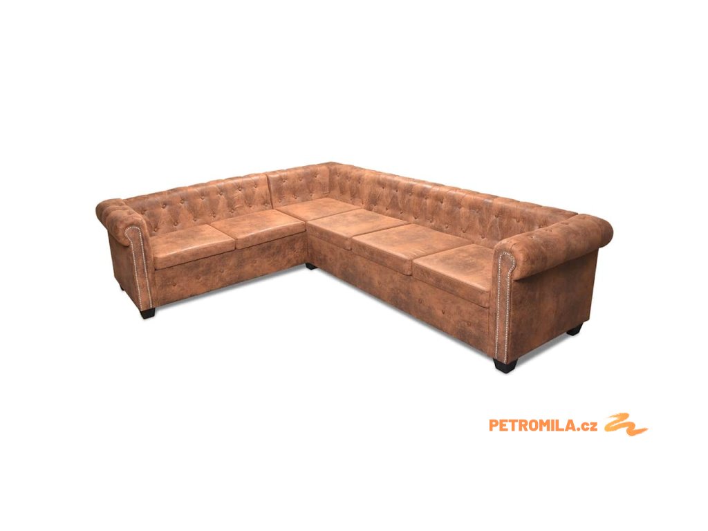 Rohová pohovka Chesterfield 6místná umělá kůže hnědá