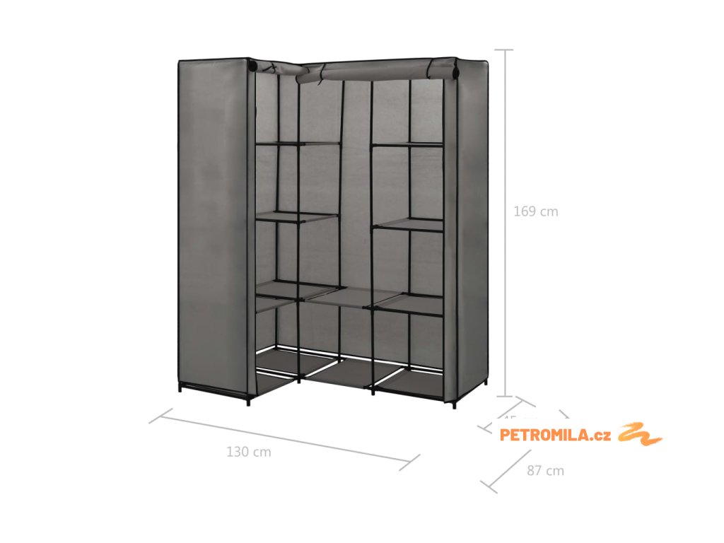 Rohová šatní skříň šedá 130 x 87 x 169 cm