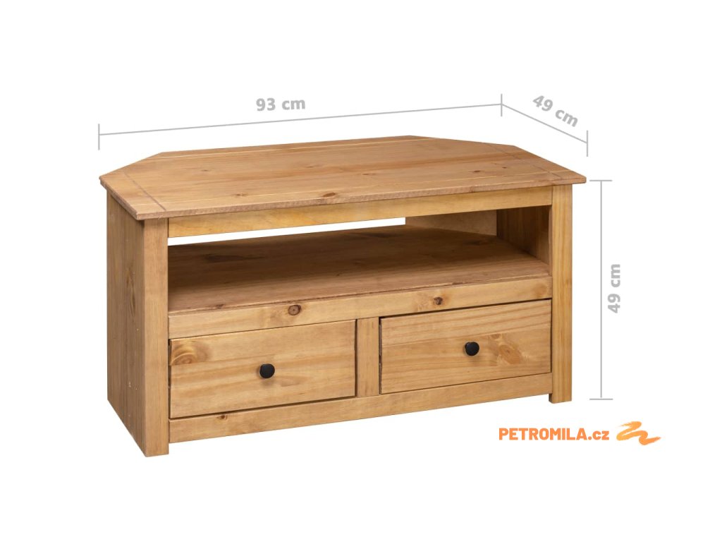 Rohová TV skříňka 93x49x49 cm masivní borovice řada Panama