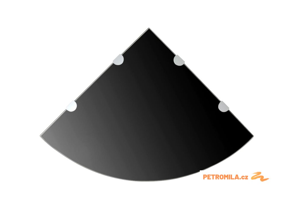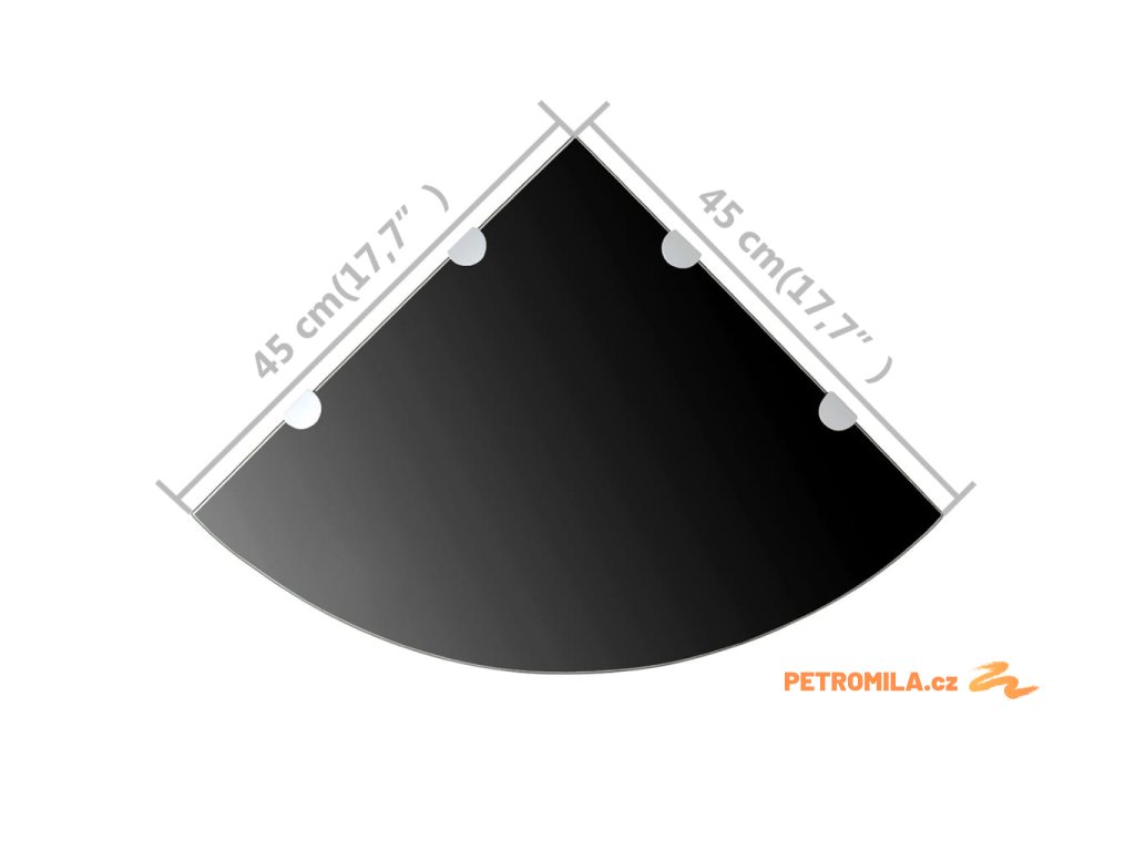 Rohové police 2 ks s chromovými podpěrami sklo černé 45 x 45 cm