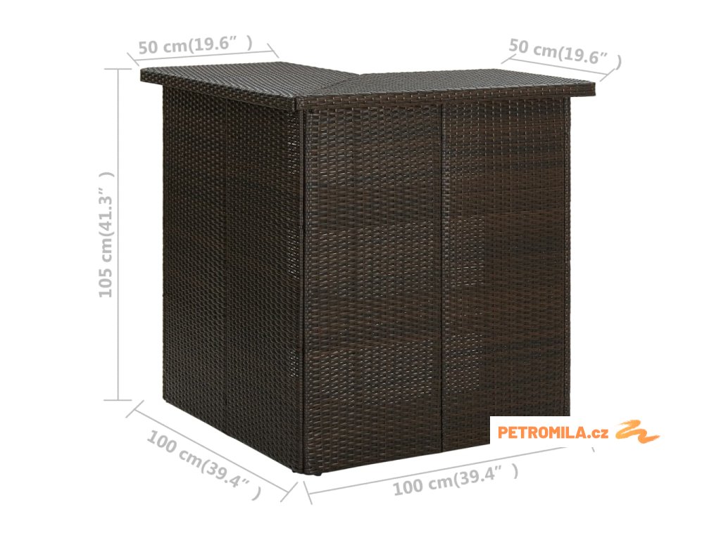 Rohový barový stolek hnědý 100 x 50 x 105 cm polyratan