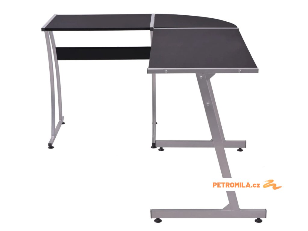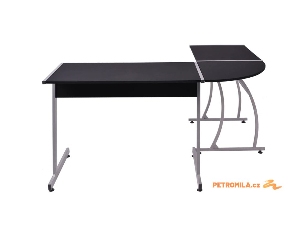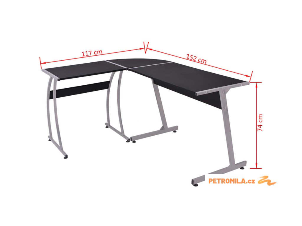 Tento rohový stůl, vyrobený z odolného kovového rámu a stolní desky z vysoce kvalitního kompozitního dřeva, je pevný, robustní a stabilní. Velká stolní deska ve tvaru písmene L je ideální pro práci nebo studium. Poskytuje dostatek místa pro umístění počítače, notebooku, knih, složek, dokumentů nebo rámečků, ozdobných předmětů, květináčů apod.