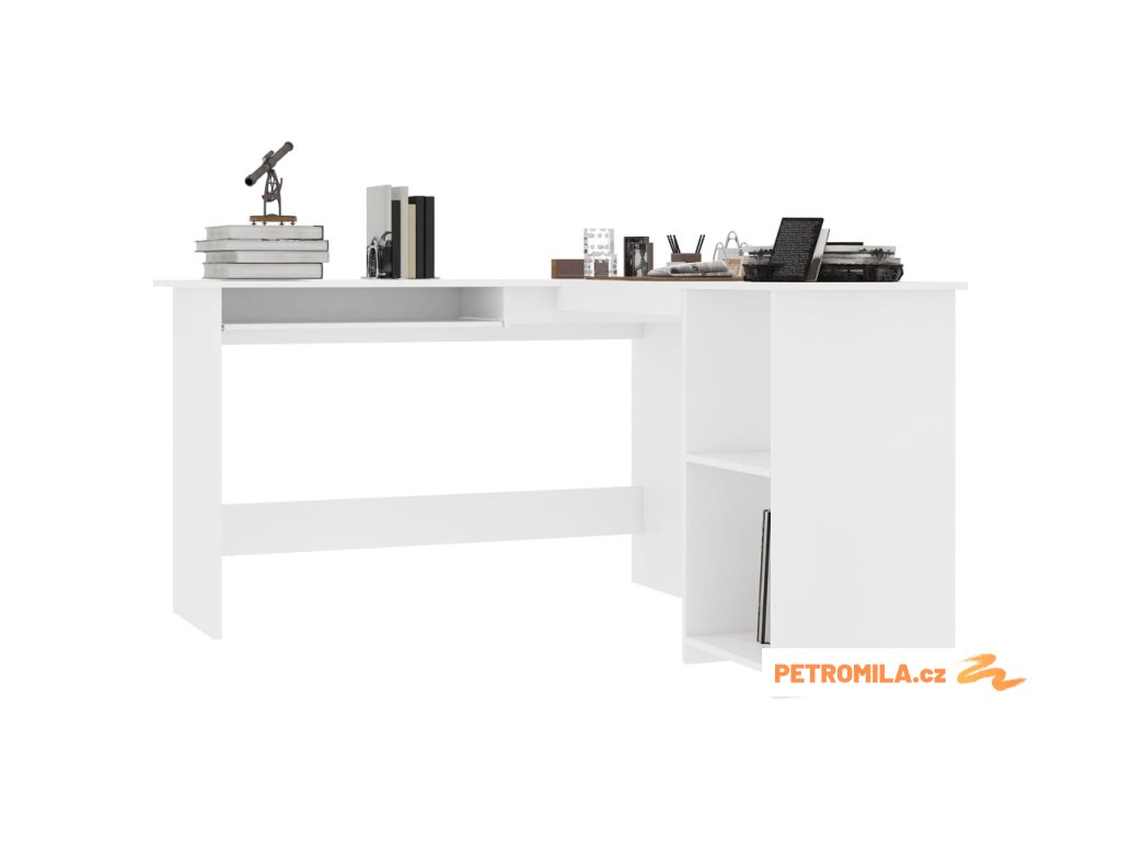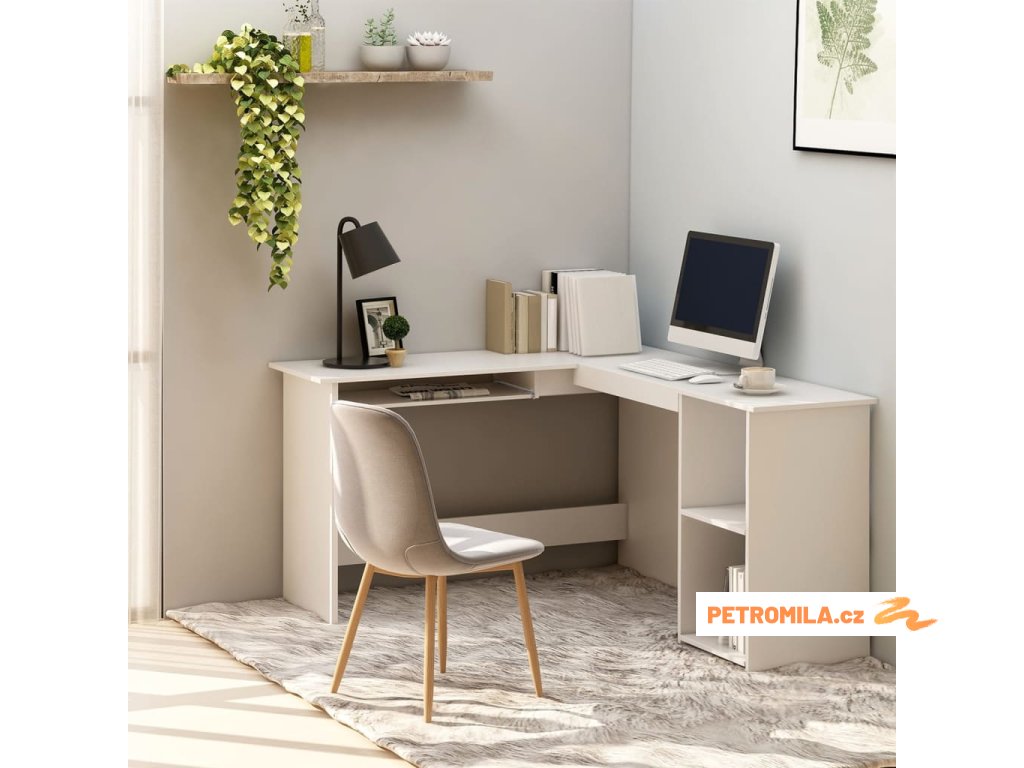 Tento moderní rohový psací stůl ve tvaru písmene L má vysouvací poličku na klávesnici a 2 otevřené police, je tedy velice praktický a zároveň se stane ústředním bodem vaší kanceláře či studovny.