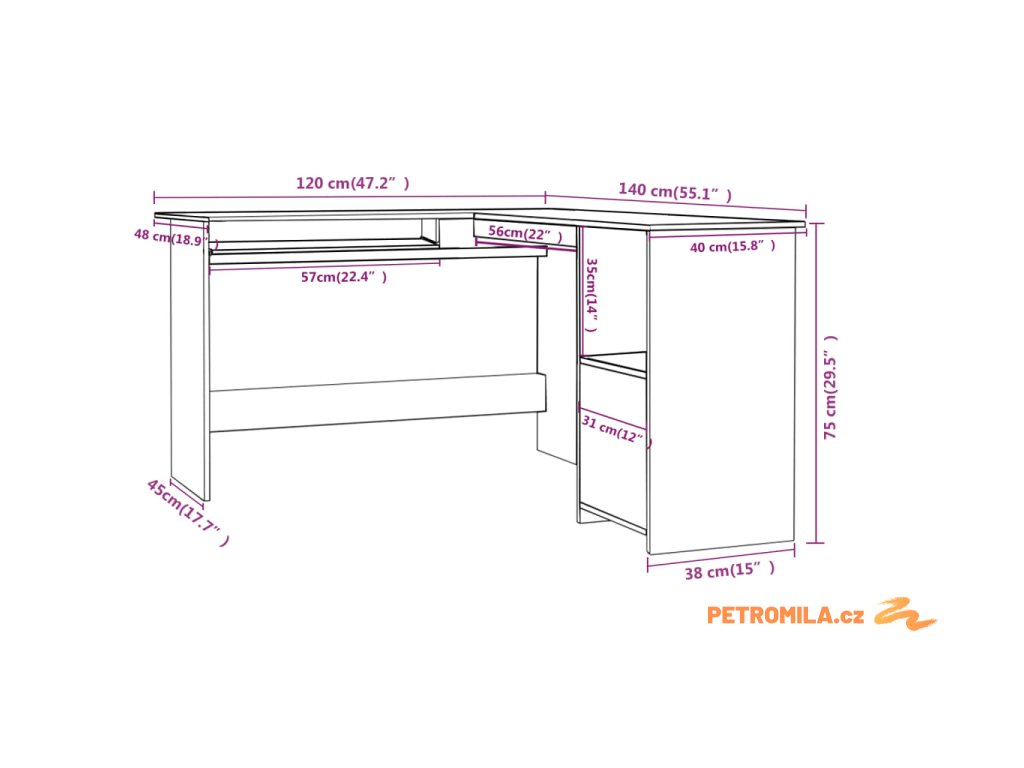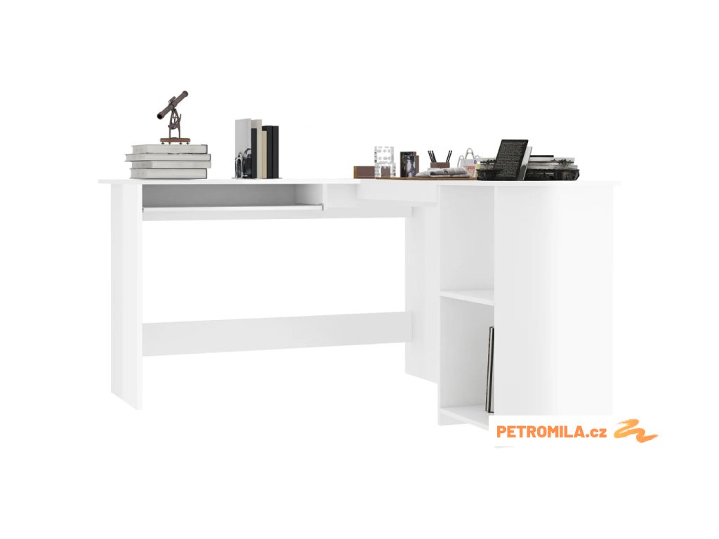 Tento moderní rohový psací stůl ve tvaru písmene L má vysouvací poličku na klávesnici a 2 otevřené police, je tedy velice praktický a zároveň se stane ústředním bodem vaší kanceláře či studovny.