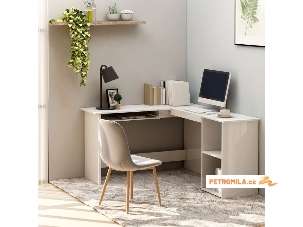 Rohový psací stůl bílý lesklý 120x140x75 cm kompozitní dřevo
