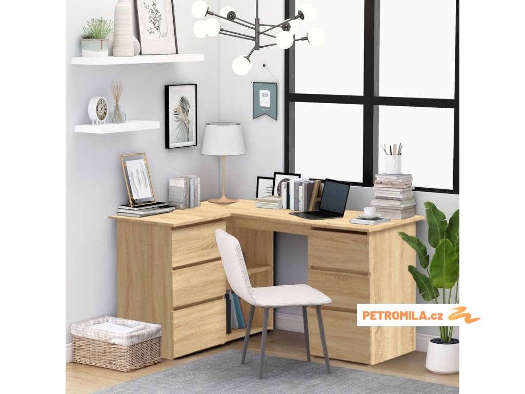Náš rohový psací stůl je praktickým doplňkem do vaší studovny či pracovny!