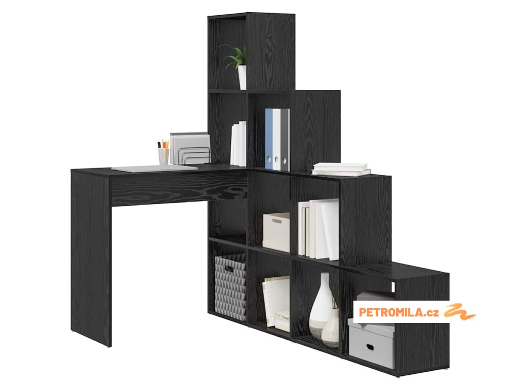 Rohový psací stůl s policí Černý dub 101,5 x 149,5 x 149,5 cm