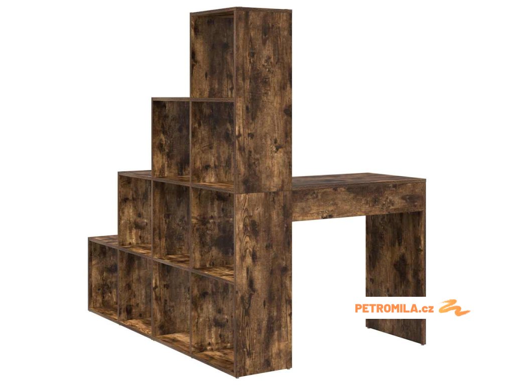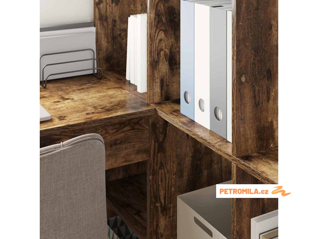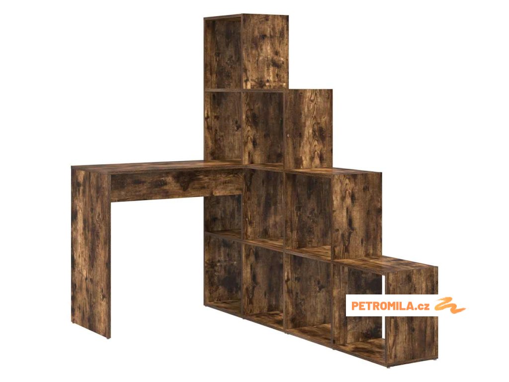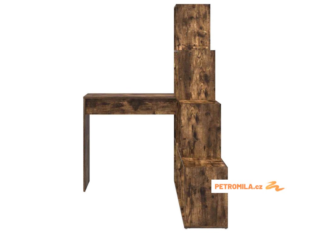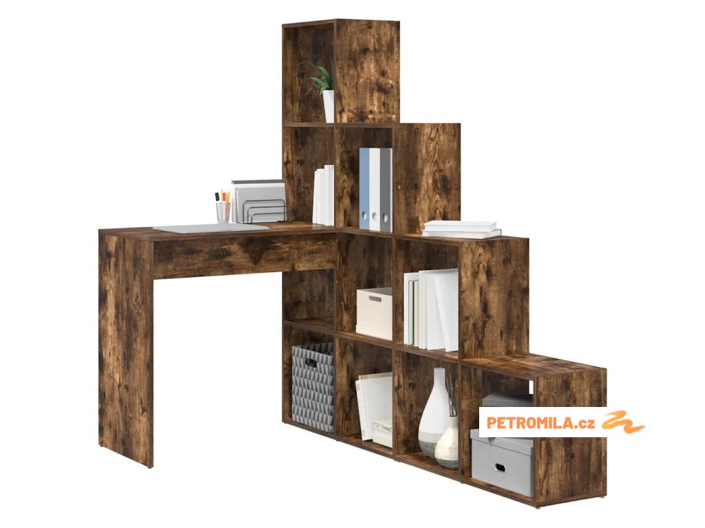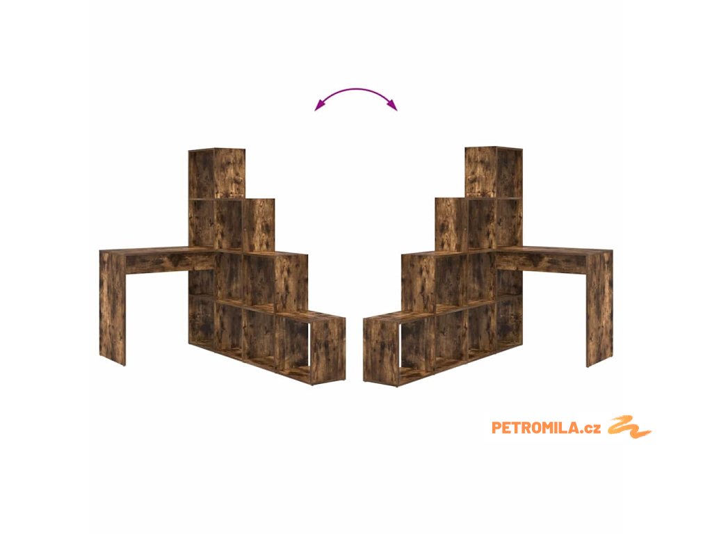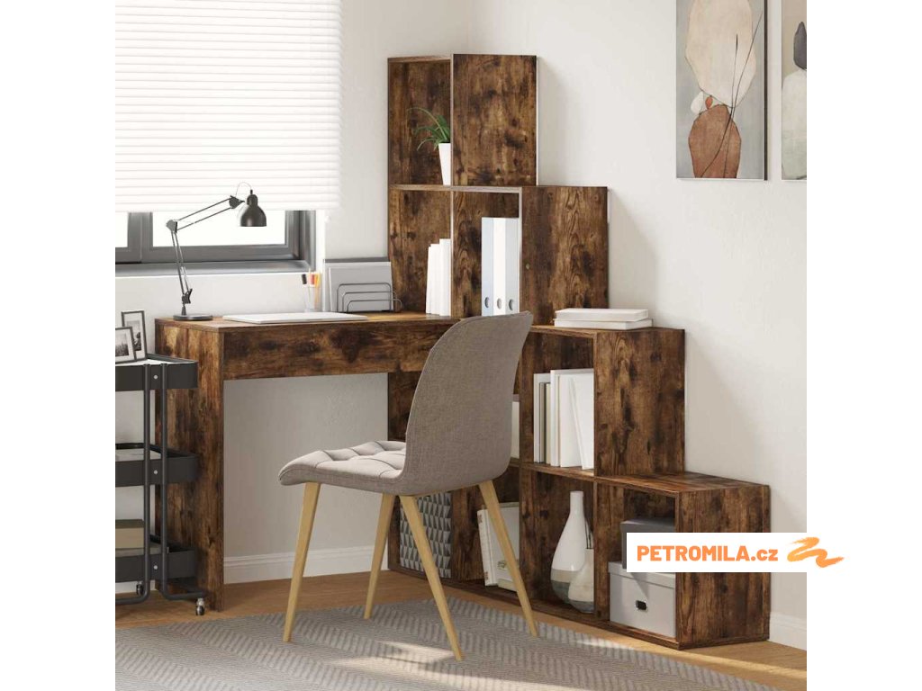 Rohový psací stůl s policí Kouřový dub 101,5 x 149,5 x 149,5 cm