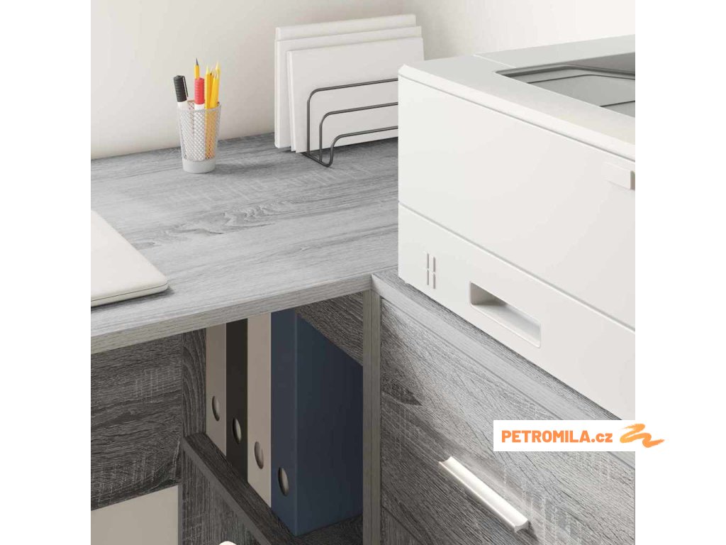 - Vlastnosti / Funkce / Design: Stůl má chytrý design, který maximálně využívá rohy a šetří místo. Nabízí spoustu úložných možností, které splní všechny potřeby vašeho kancelářského prostoru. Minimalistický styl se skvěle hodí jak do moderního, tak tradičního prostředí, což každé místnosti dodává sofistikovaný nádech bez zbytečných extra.