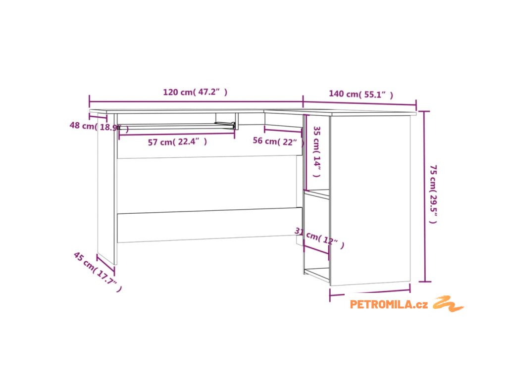 Rohový psací stůl šedý sonoma 120x140x75 cm kompozitní dřevo