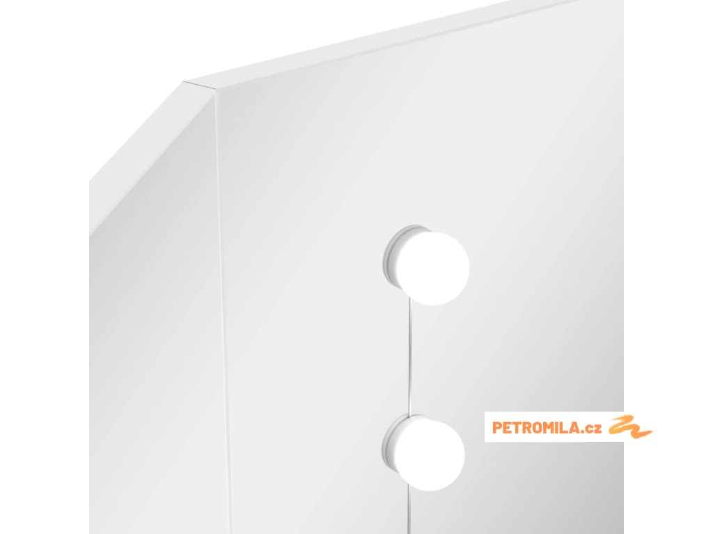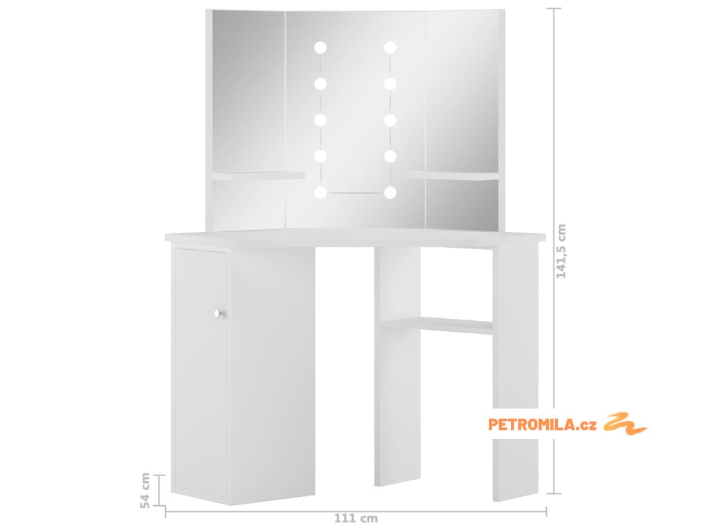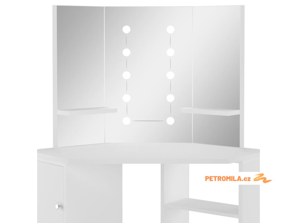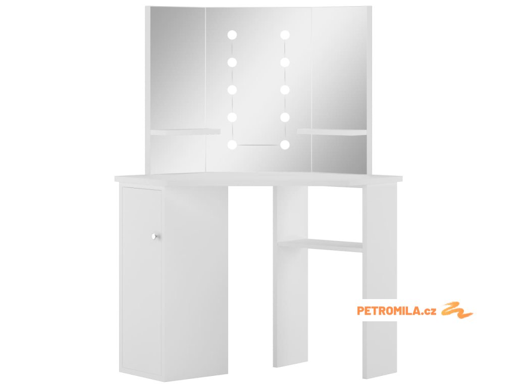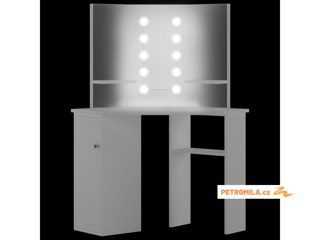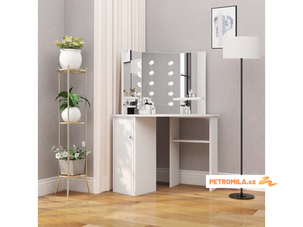 Rohový toaletní stolek na líčení s LED světlem bílý