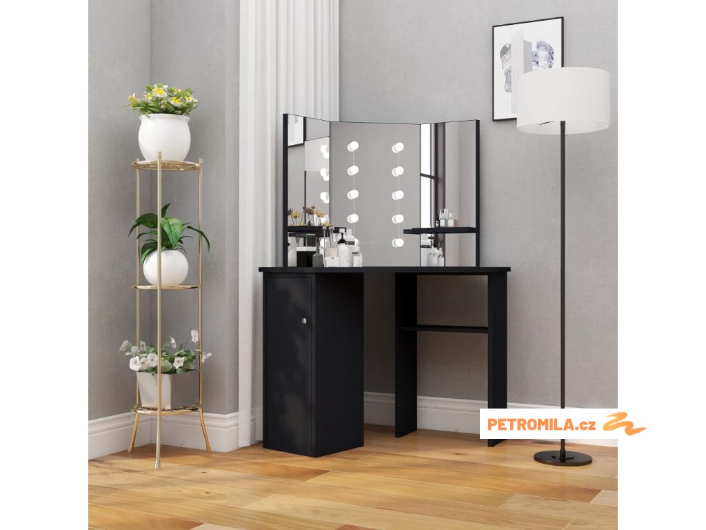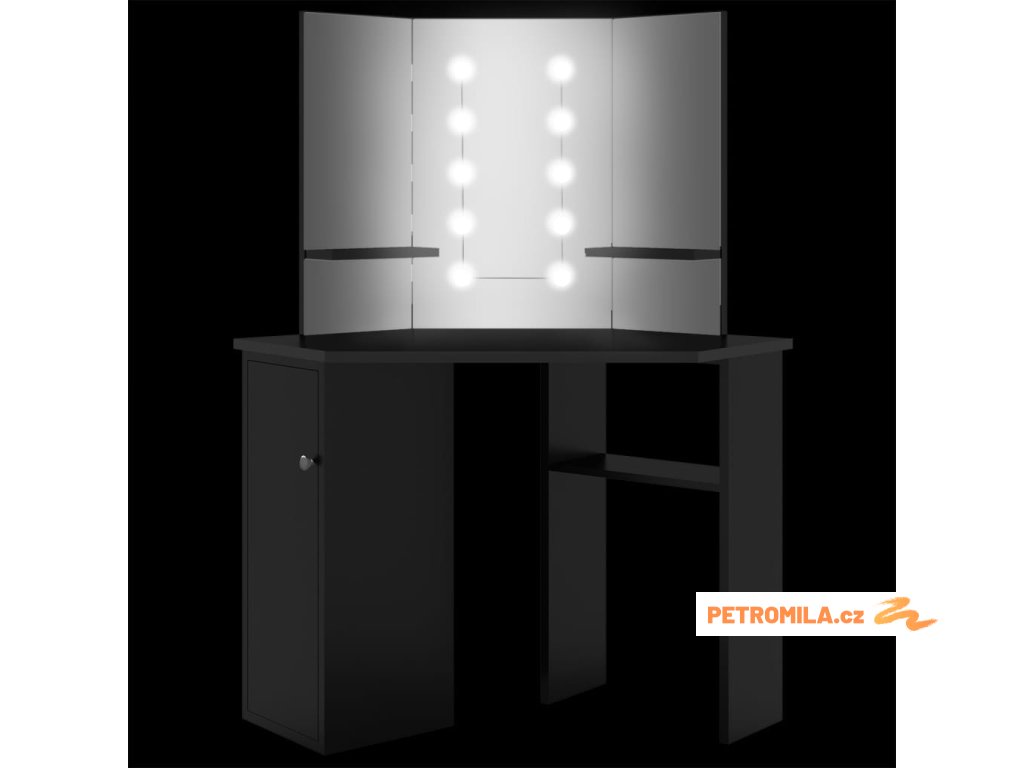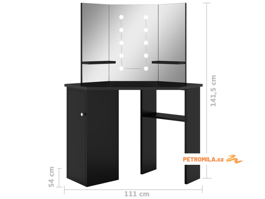 Rohový toaletní stolek s LED světlem černý 111 x 54 x 141,5 cm