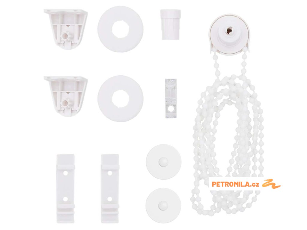 Žaluzie je vyrobena ze 100% polyesteru. Dodává se s bílým kuličkovým řetízkem, jehož instalace a používání jsou velmi snadné.