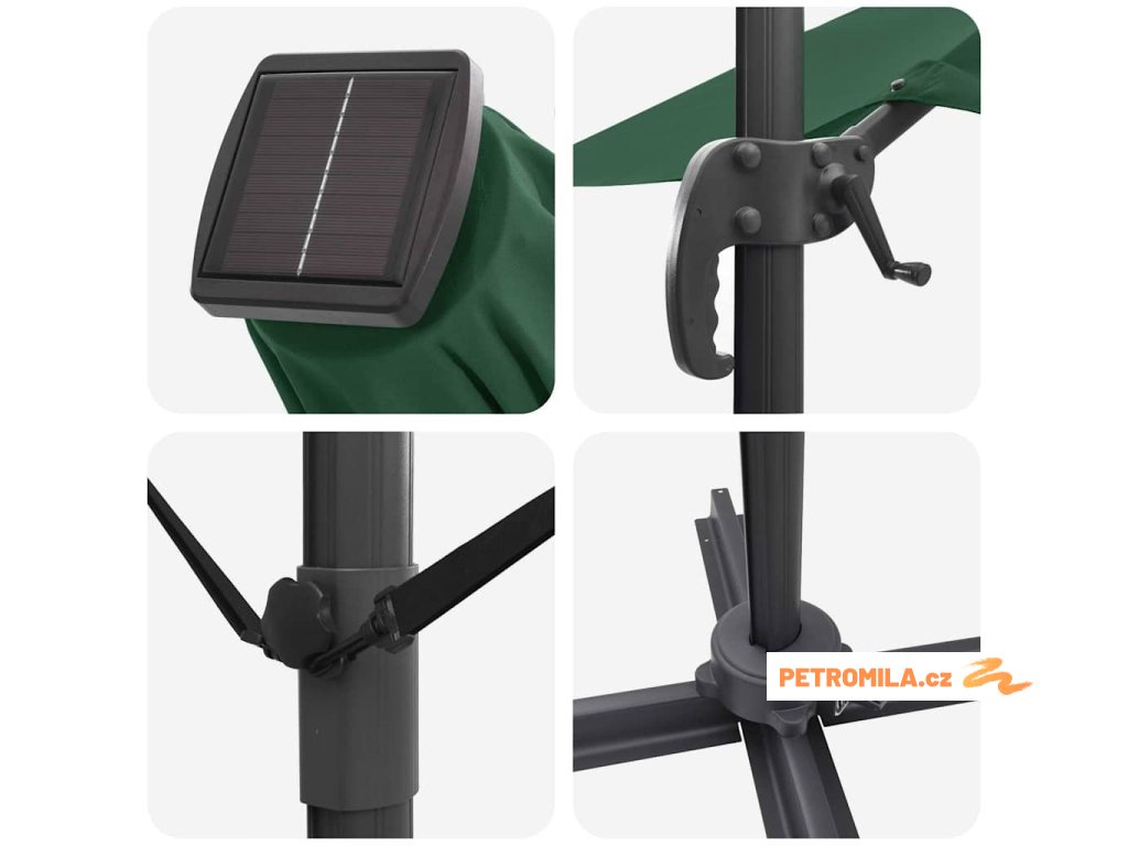 - Moderní styl Díky jednoduchému designu má parasol čisté linie, které se snadno hodí do různých venkovních prostor. Tato kombinace stylu a funkčnosti z něj činí skvělý doplněk do exteriéru.