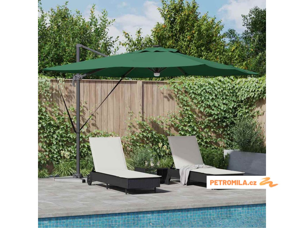 - Hliníková a polyesterová konstrukce Rám parasolu z kvalitního hliníku je stabilní a pevný. Polyesterový plášť blokuje UV paprsky a udržuje příjemnou teplotu i v horkých dnech, což z něj dělá skvělý kousek pro vaše venkovní útočiště.