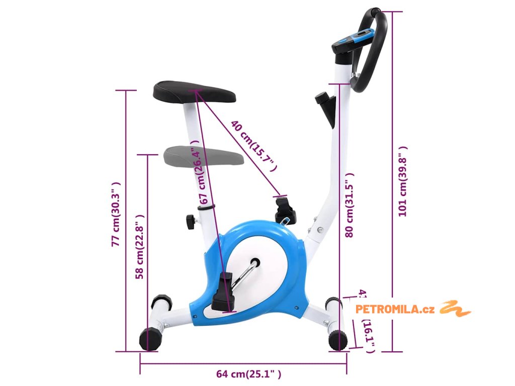 - Ergonomický design: Fitness kolo je ergonomicky navrženo. Sedlo lze vertikálně nastavit podle vaší výšky. Protiskluzové pedály umožňují optimální přenos síly z nohou na pedály. Řemínek na pedálech zabrání náhodnému sklouznutí nohy z pedálů.