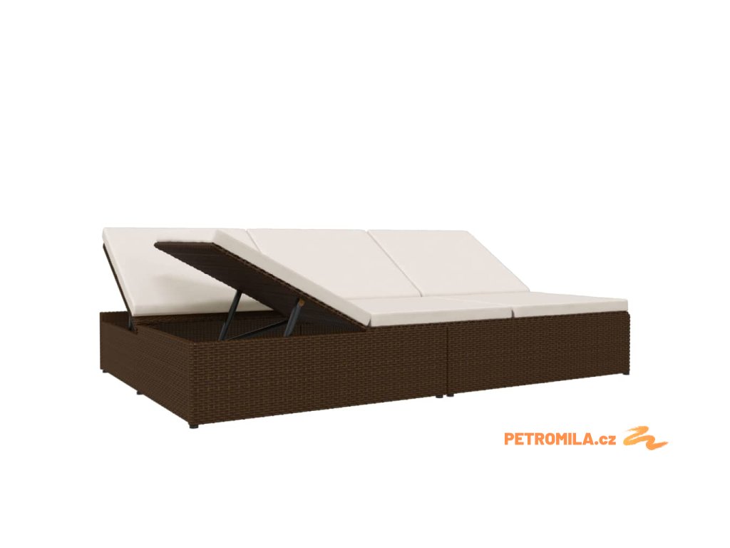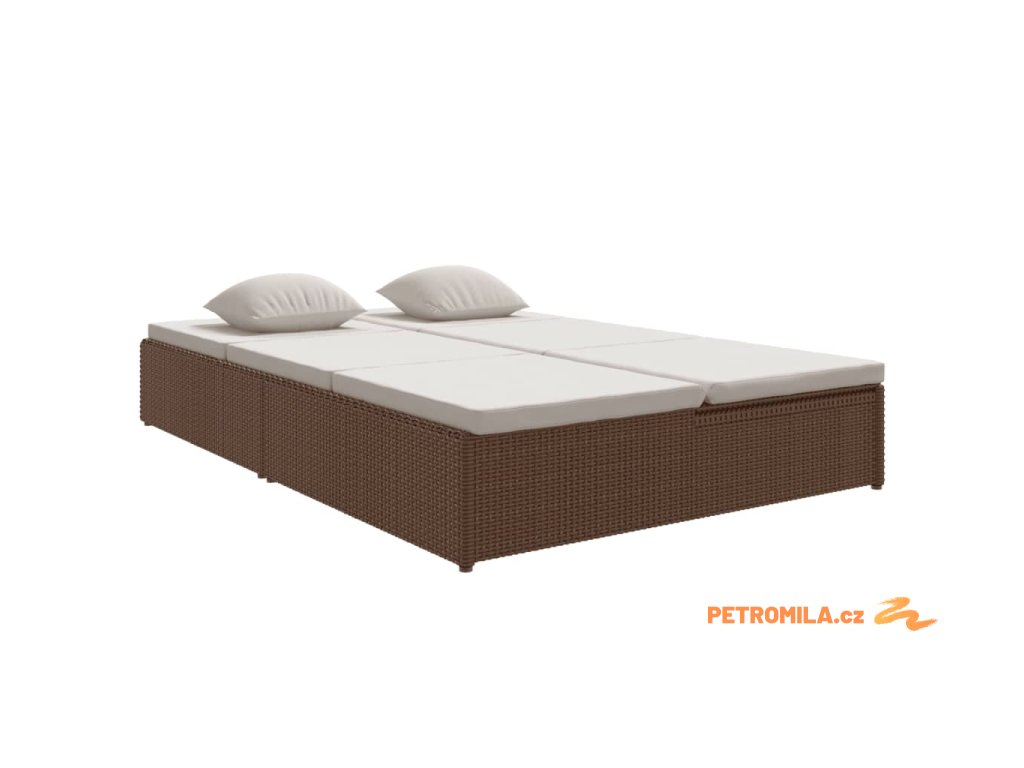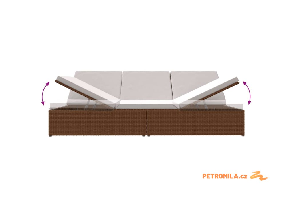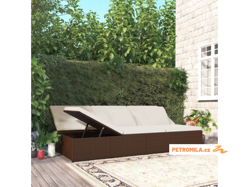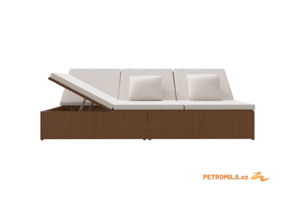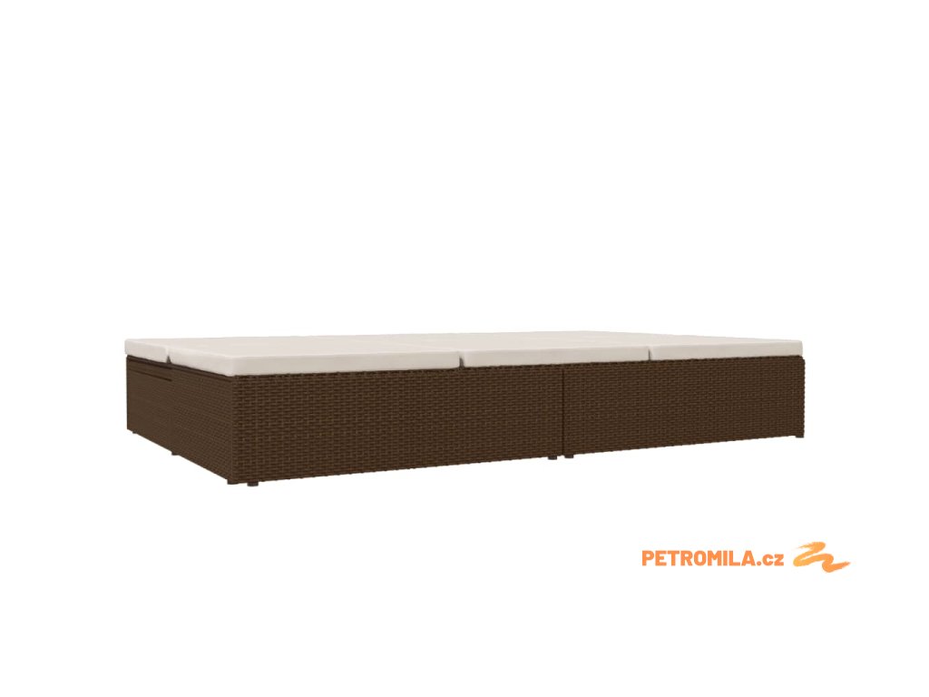 Rozkládací opalovací lehátko s poduškami polyratan hnědé