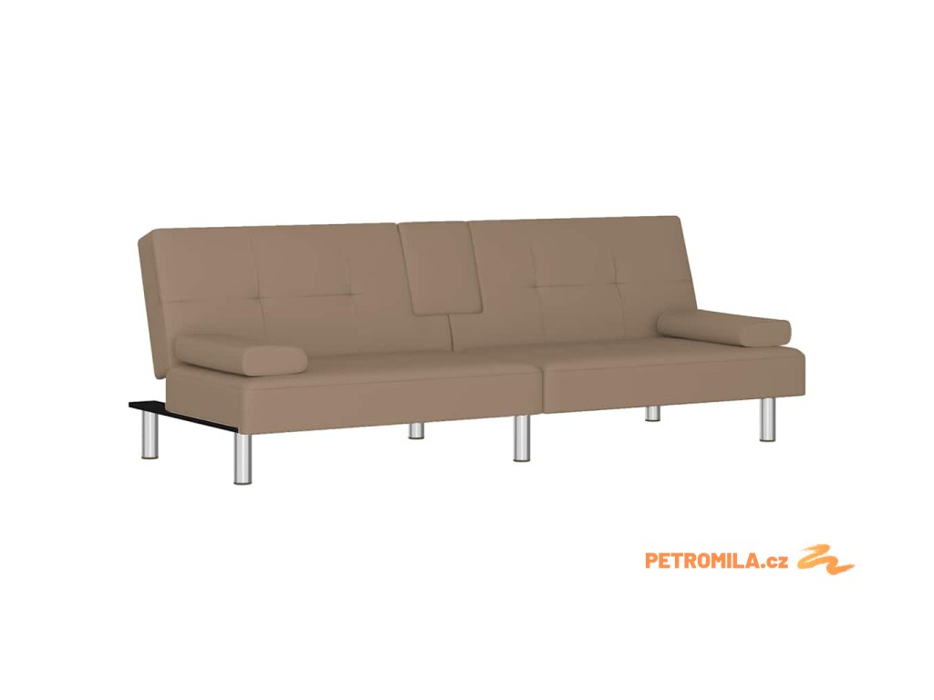 Rozkládací pohovka s držáky na nápoje cappuccino umělá kůže