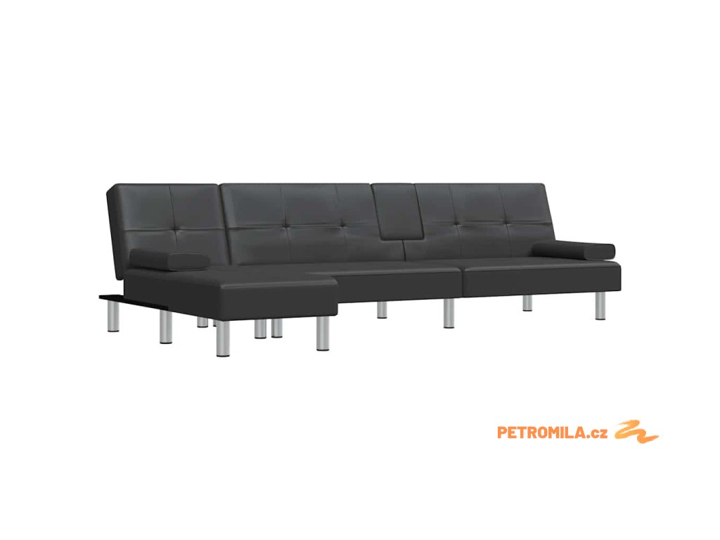 Rozkládací pohovka ve tvaru L černá 255x140x70 cm umělá kůže