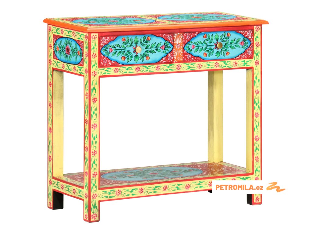 Ručně malovaný konzolový stolek 80x35x75 cm masivní mangovník