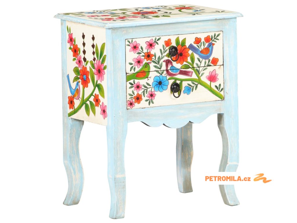 Ručně malovaný noční stolek 40x30x50 cm masivní mangovník