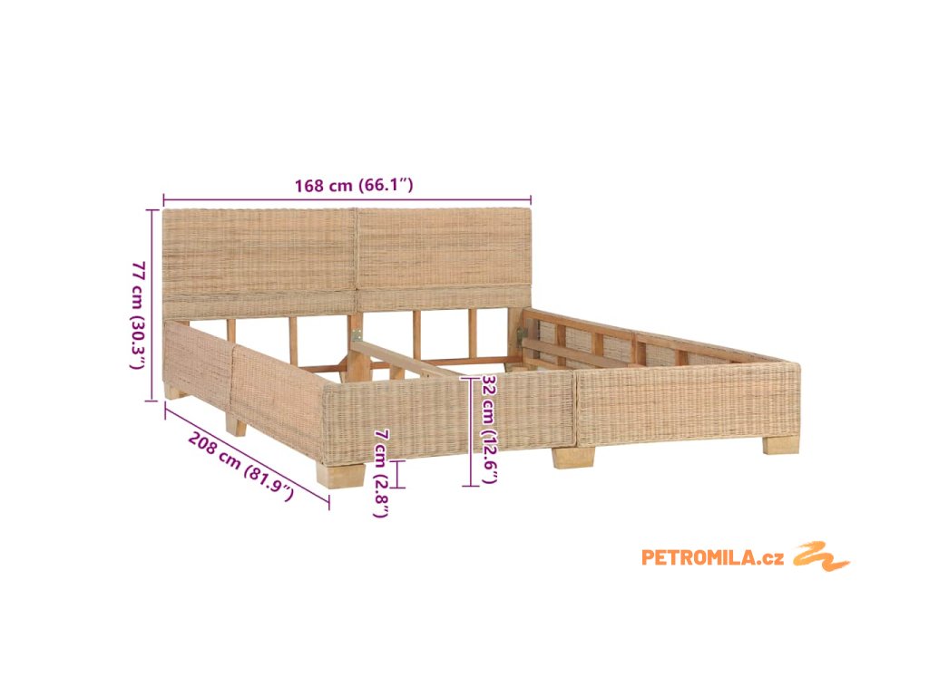 Upozorňujeme, že součástí balení je pouze rám postele, nikoliv rošt a matrace. Postel je ručně vyplétaná přírodním ratanem, a proto se její odstín může kus od kusu lehce odlišovat.