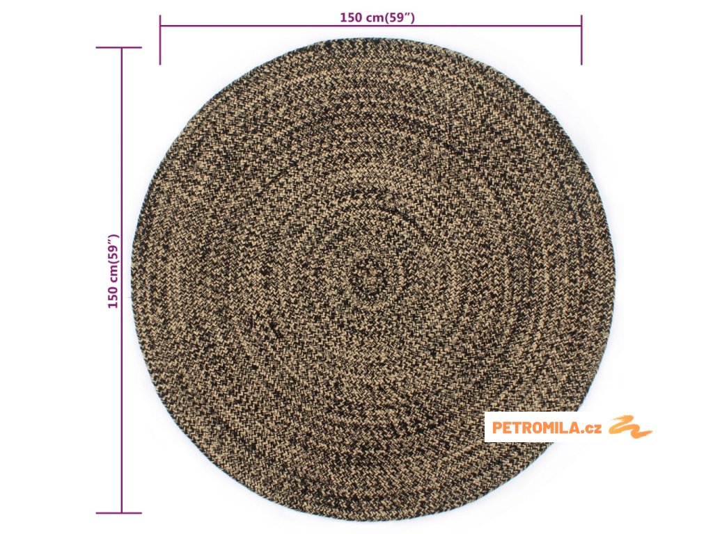 Ručně vyráběný koberec juta černý a přírodní 150 cm