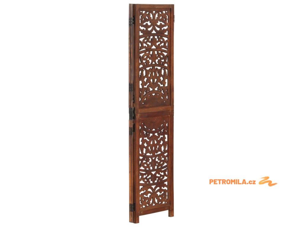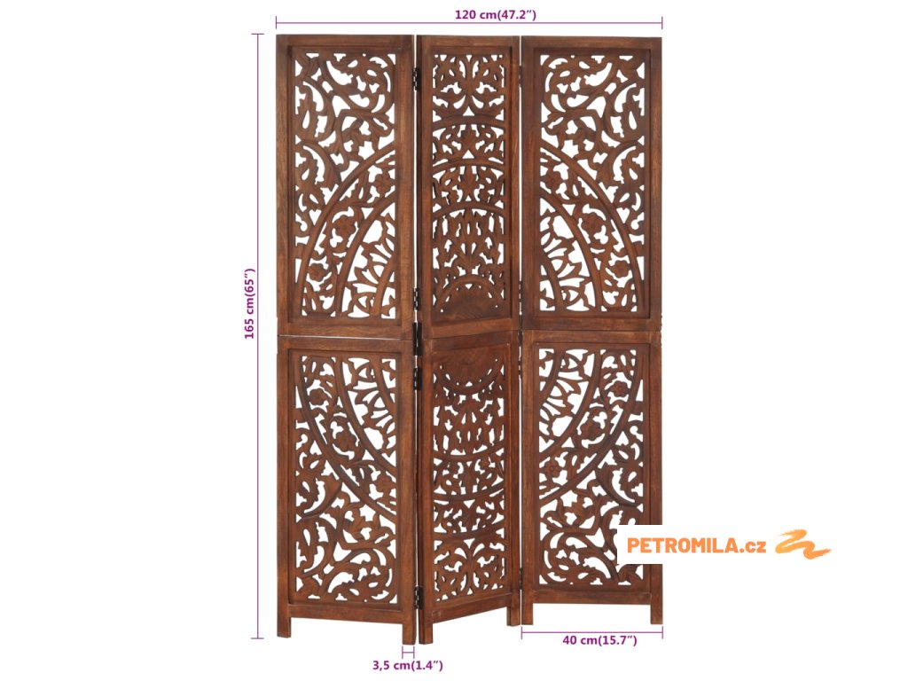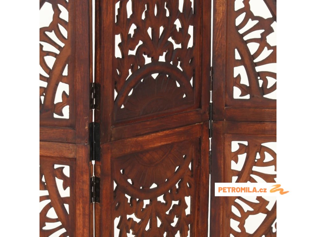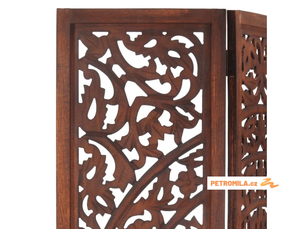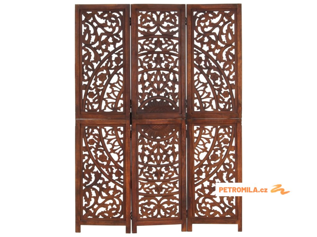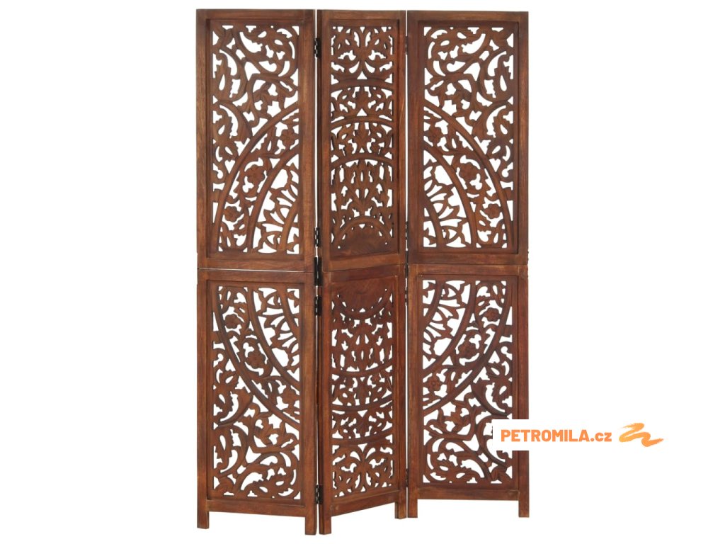 Ručně vyřezávaný 3dílný paraván hnědý 120x165 masivní mangovník