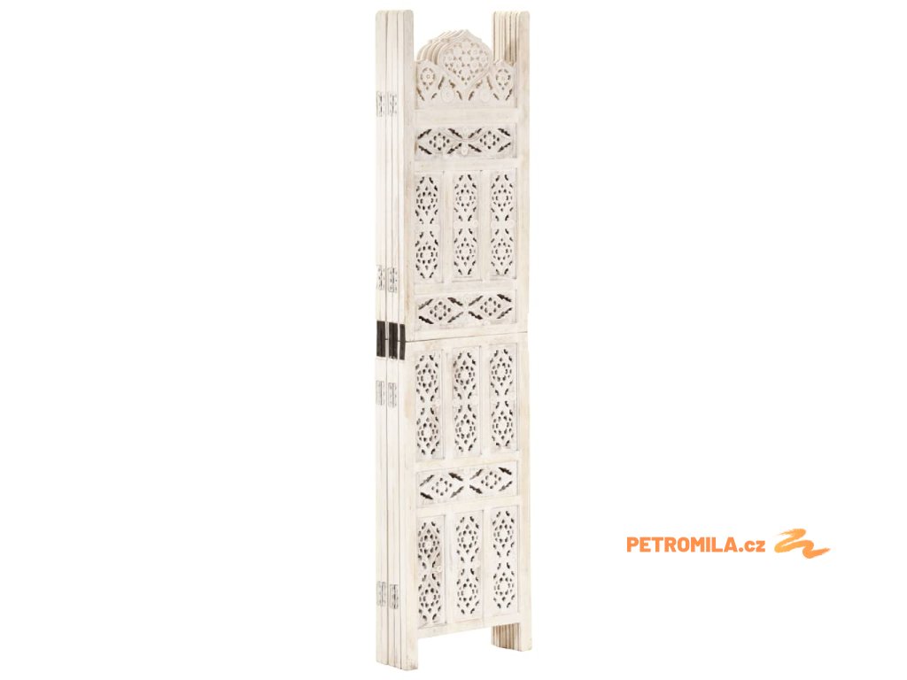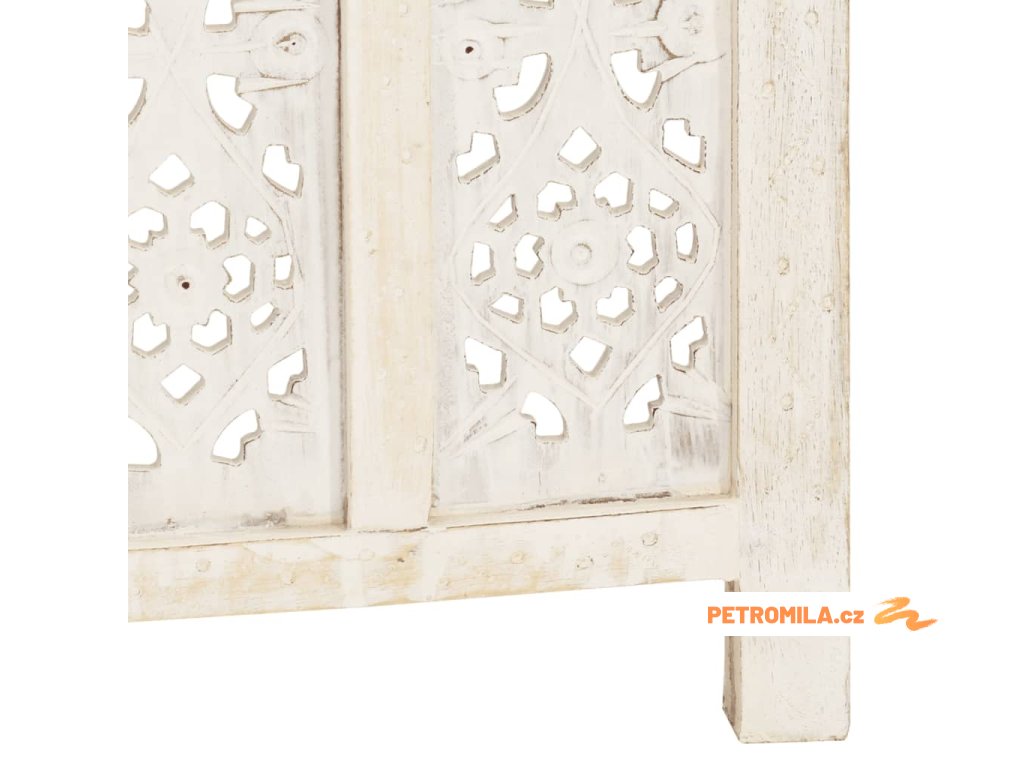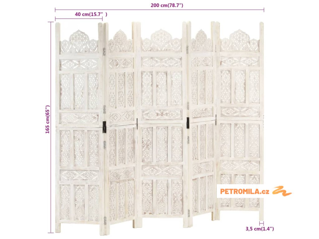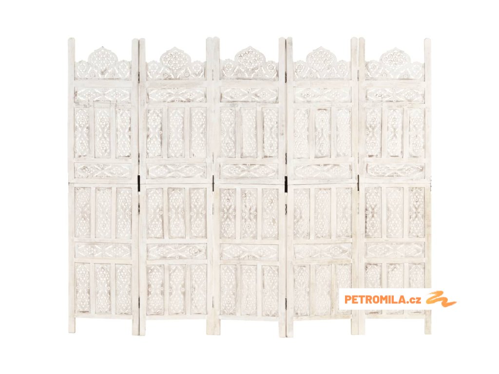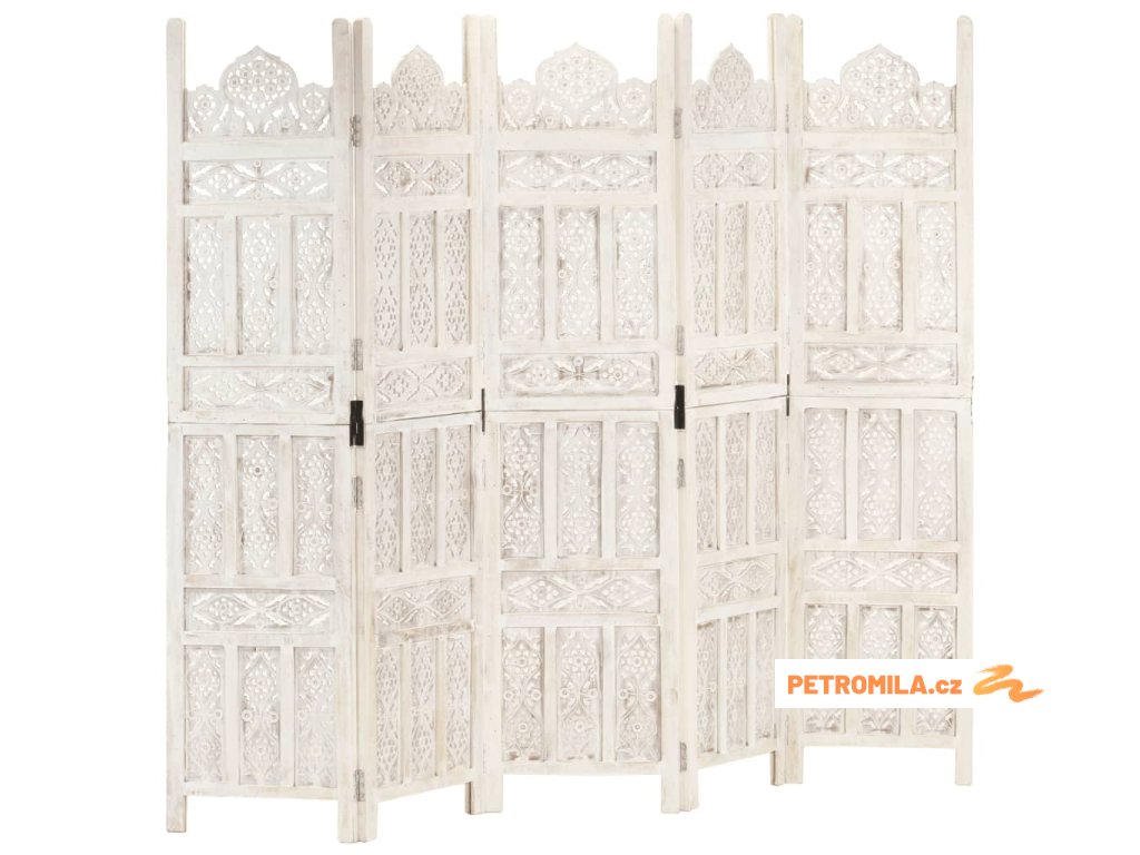 Ručně vyřezávaný 5dílný paraván bílý 200x165 masivní mangovník