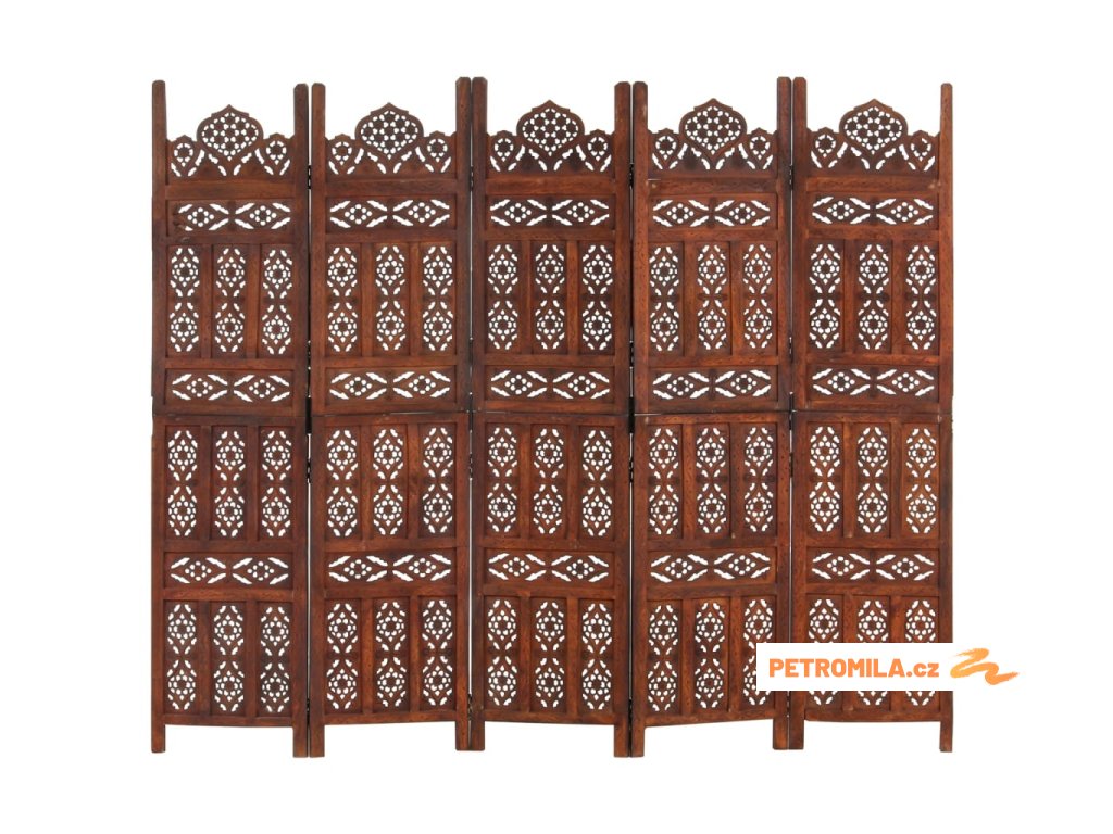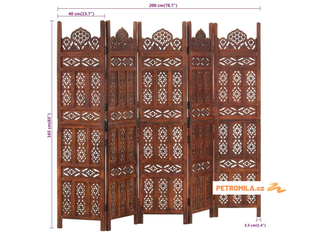 Ručně vyřezávaný 5dílný paraván hnědý 200x165 masivní mangovník
