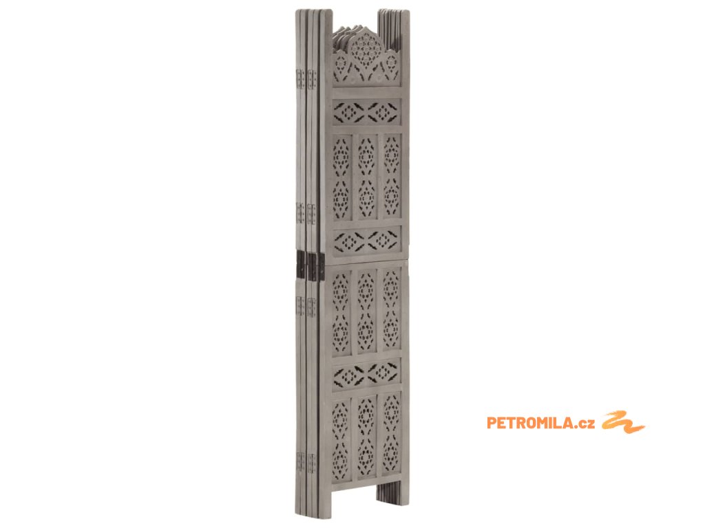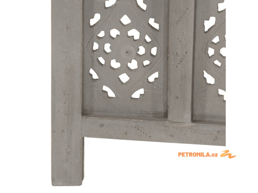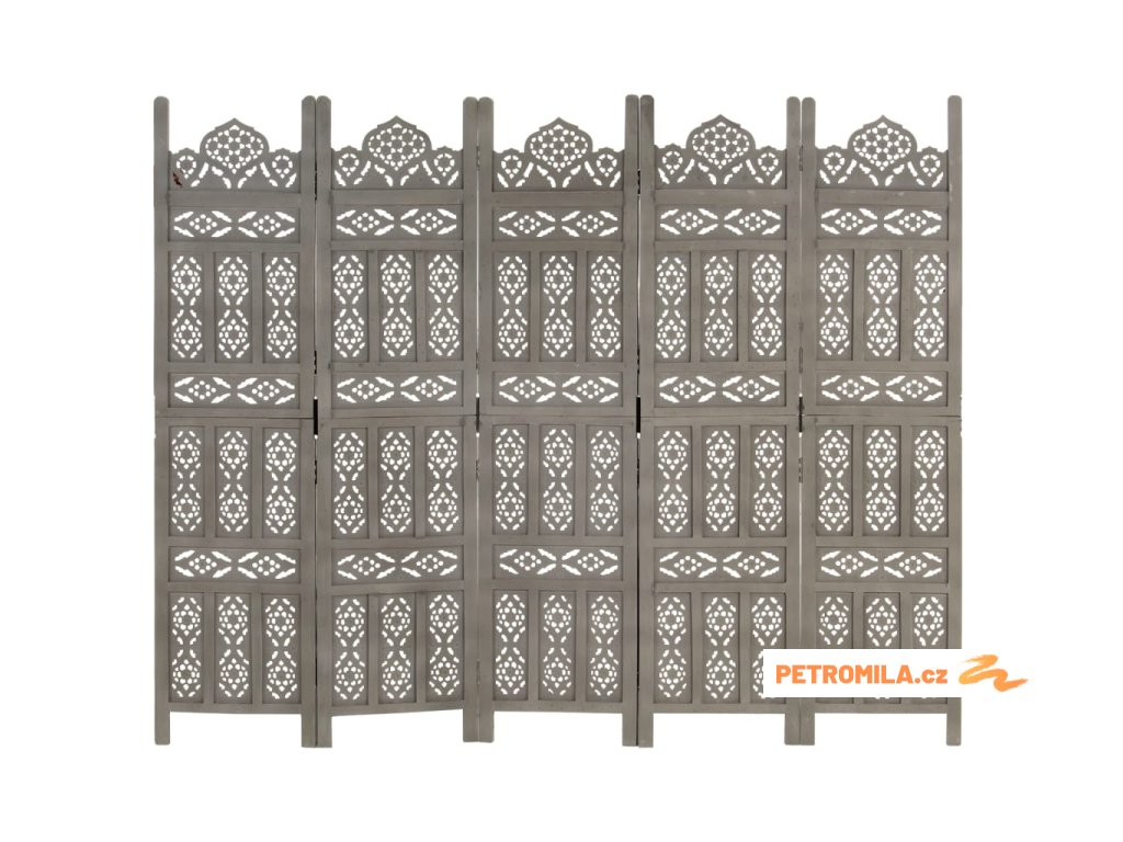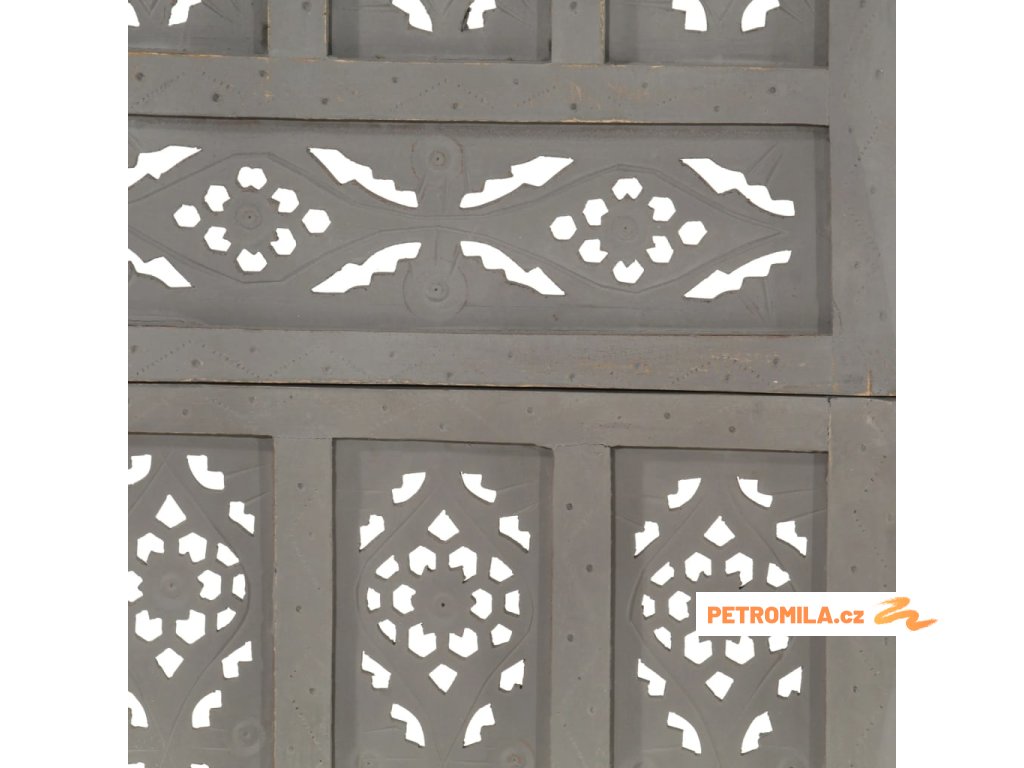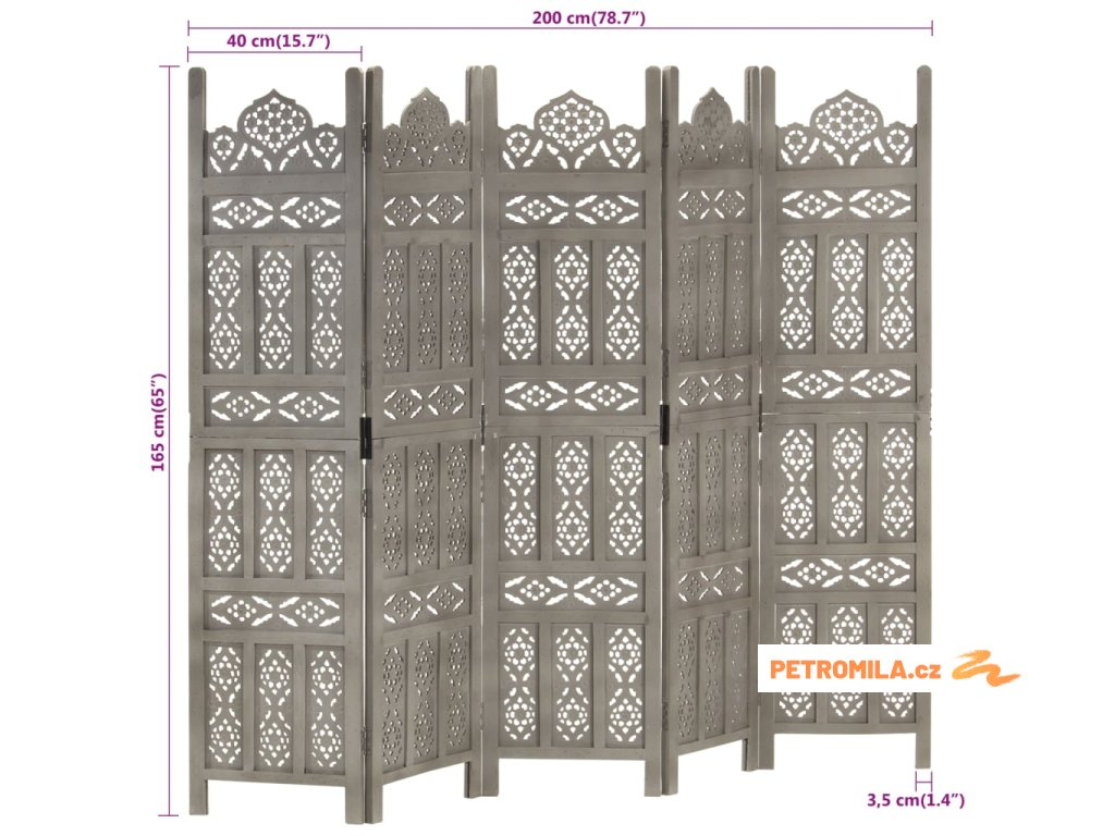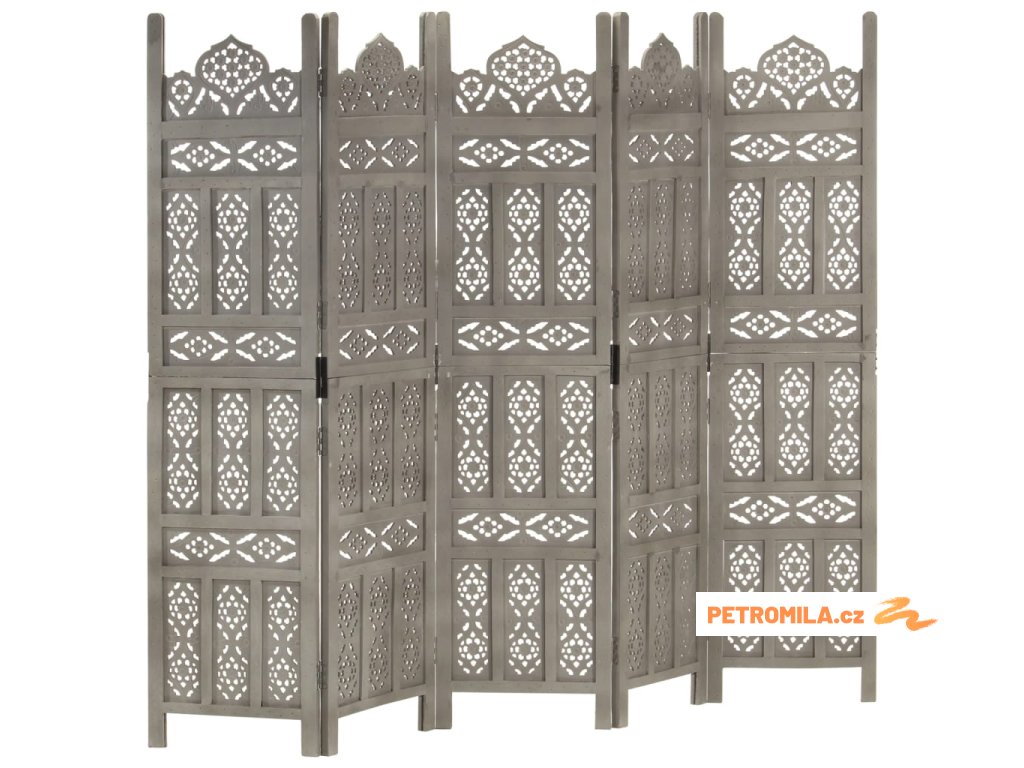 Ručně vyřezávaný 5dílný paraván šedý 200x165 masivní mangovník
