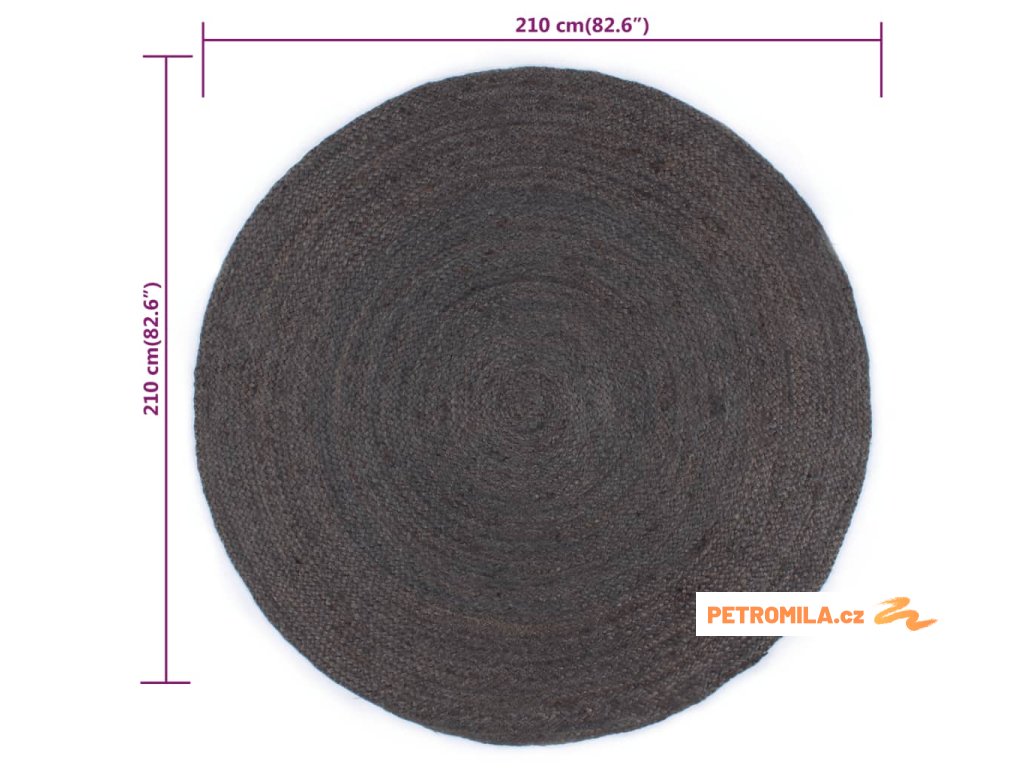 Ručně vyrobený koberec juta kulatý 210 cm tmavě šedý