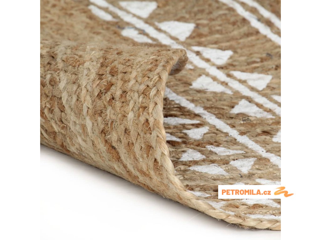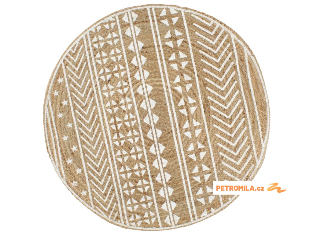 Ručně vyrobený koberec z juty s bílým potiskem 120 cm