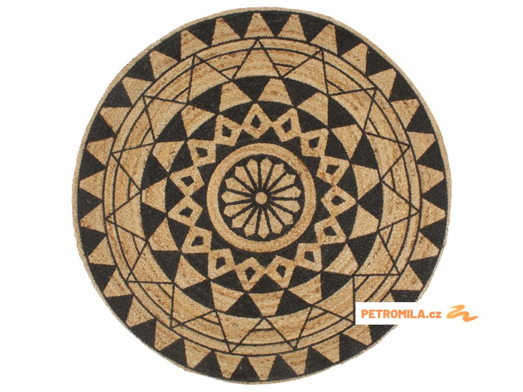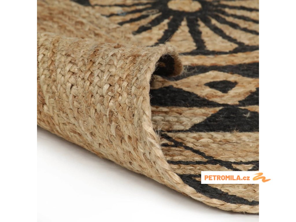 Ručně vyrobený koberec z juty s černým potiskem 90 cm