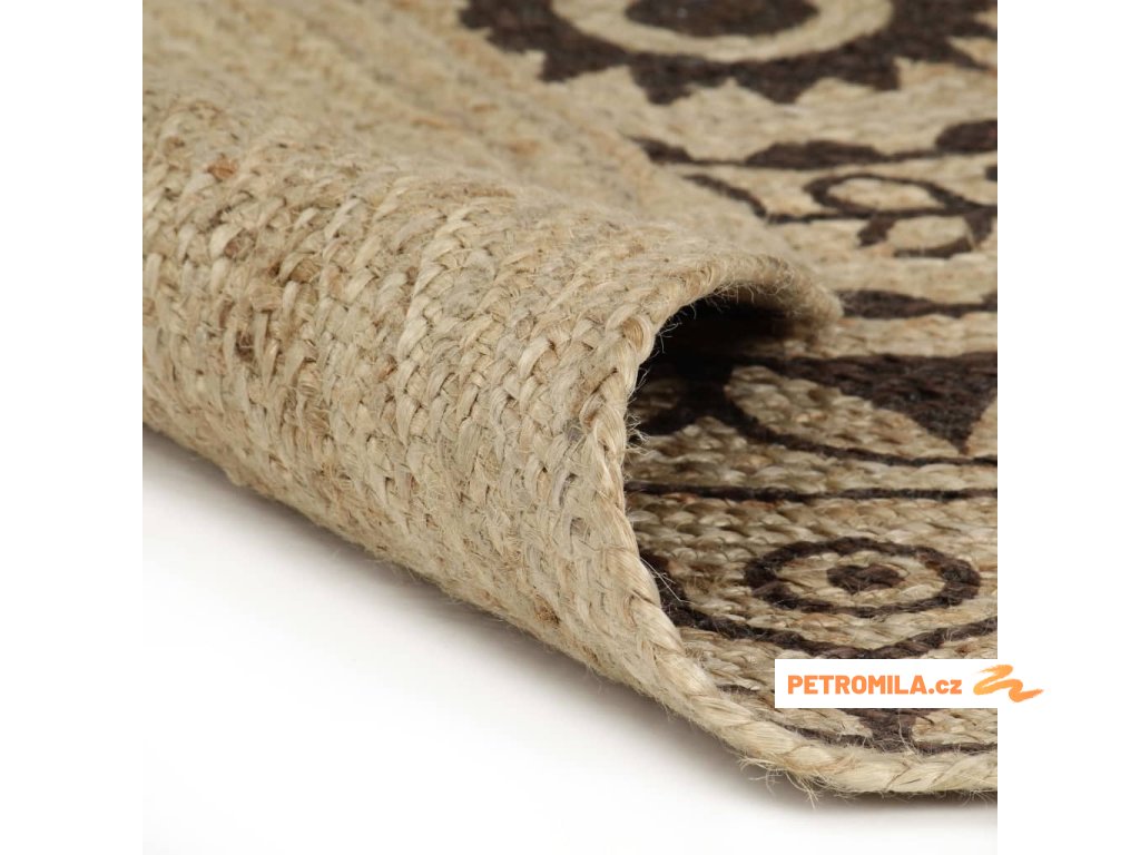 Ručně vyrobený koberec z juty s tmavě hnědým potiskem 120 cm