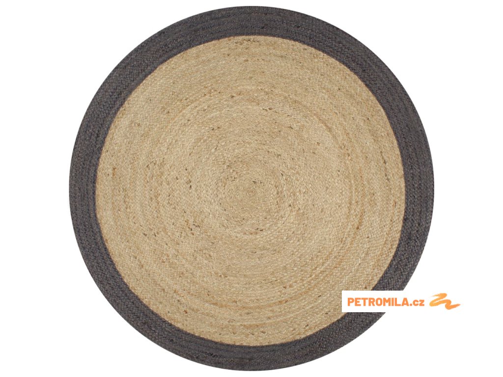 Ručně vyrobený koberec z juty s tmavě šedým okrajem 90 cm