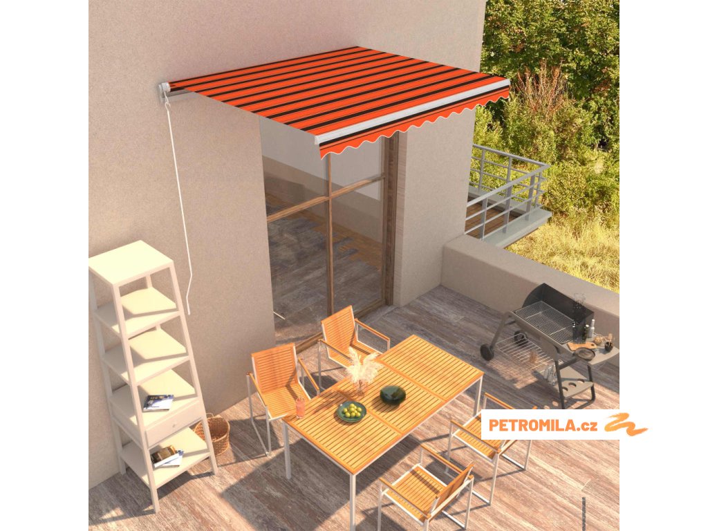 Ručně zatahovací markýza 300 x 250 cm oranžovo-hnědá