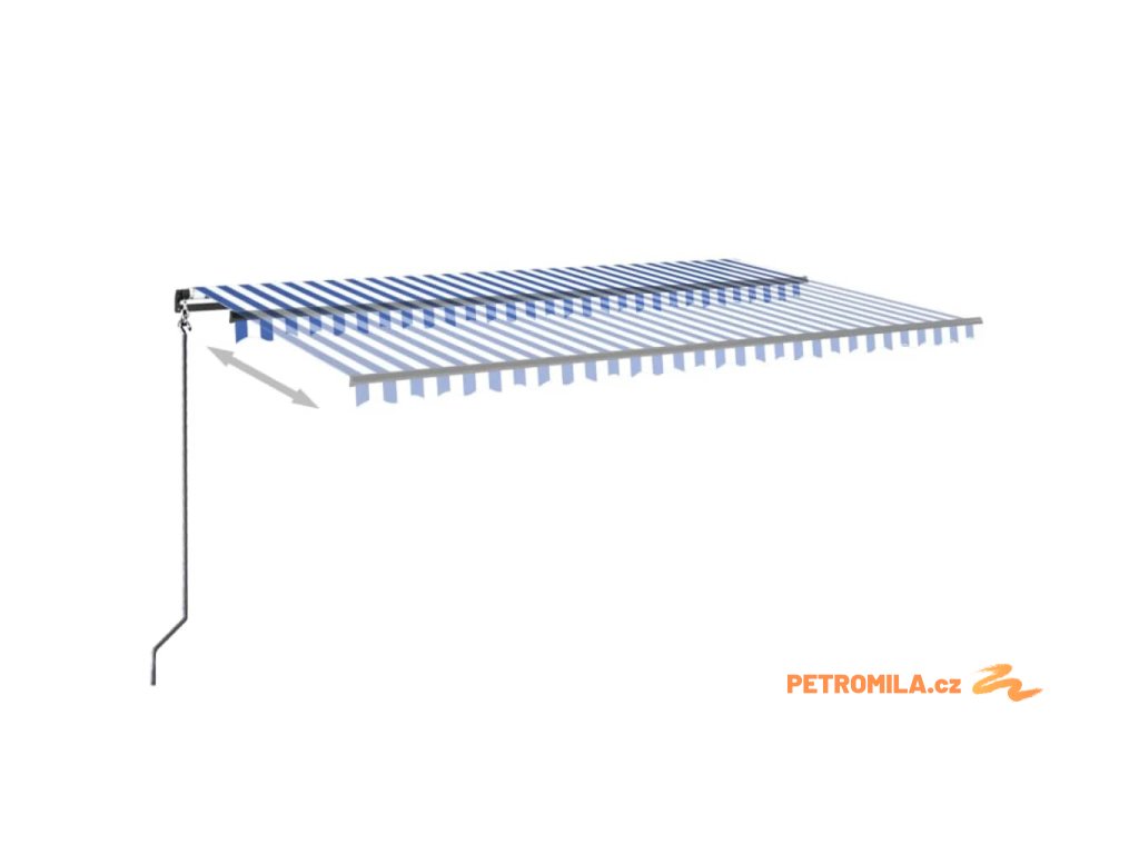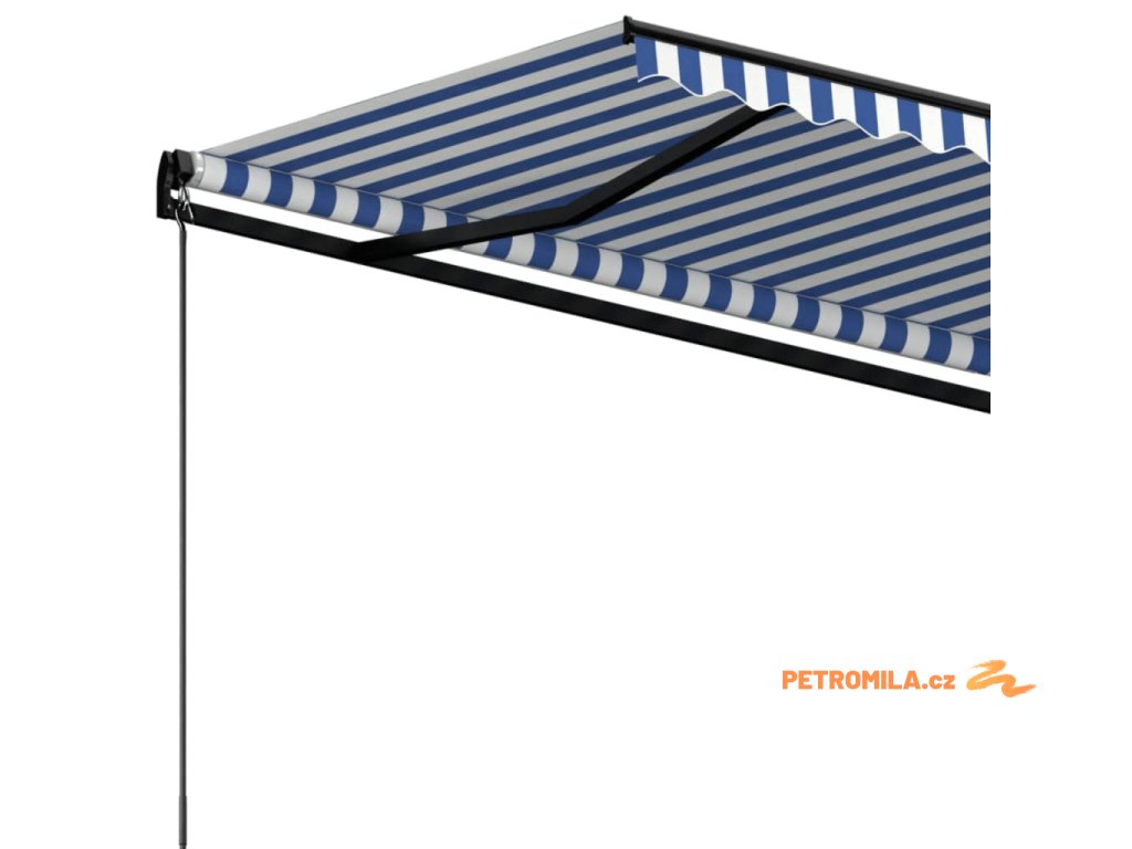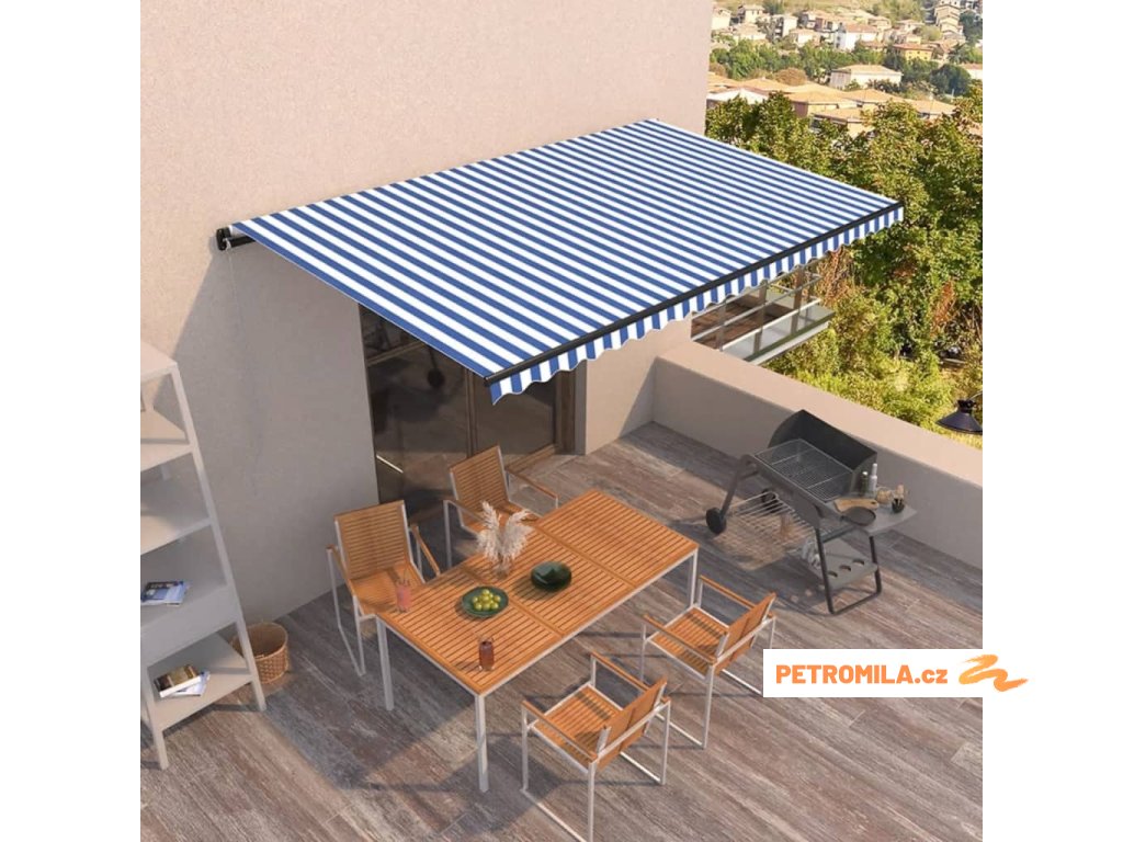 Ručně zatahovací markýza 500 x 350 cm modrobílá